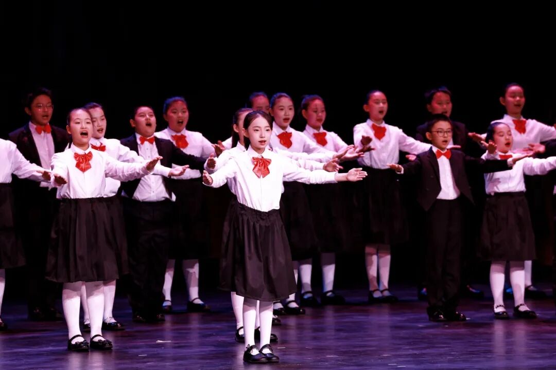 演出尾声,北京第二实验小学金帆合唱团的孩子们再次登台,以一曲耳熟能详的《歌声与微笑》为这个星光璀璨的艺术之夜画上温暖句点。质朴纯真的歌词、欢快活泼的曲调,寄寓着对生活的热爱、对世界的赞美,传递出对未来的美好祝愿。