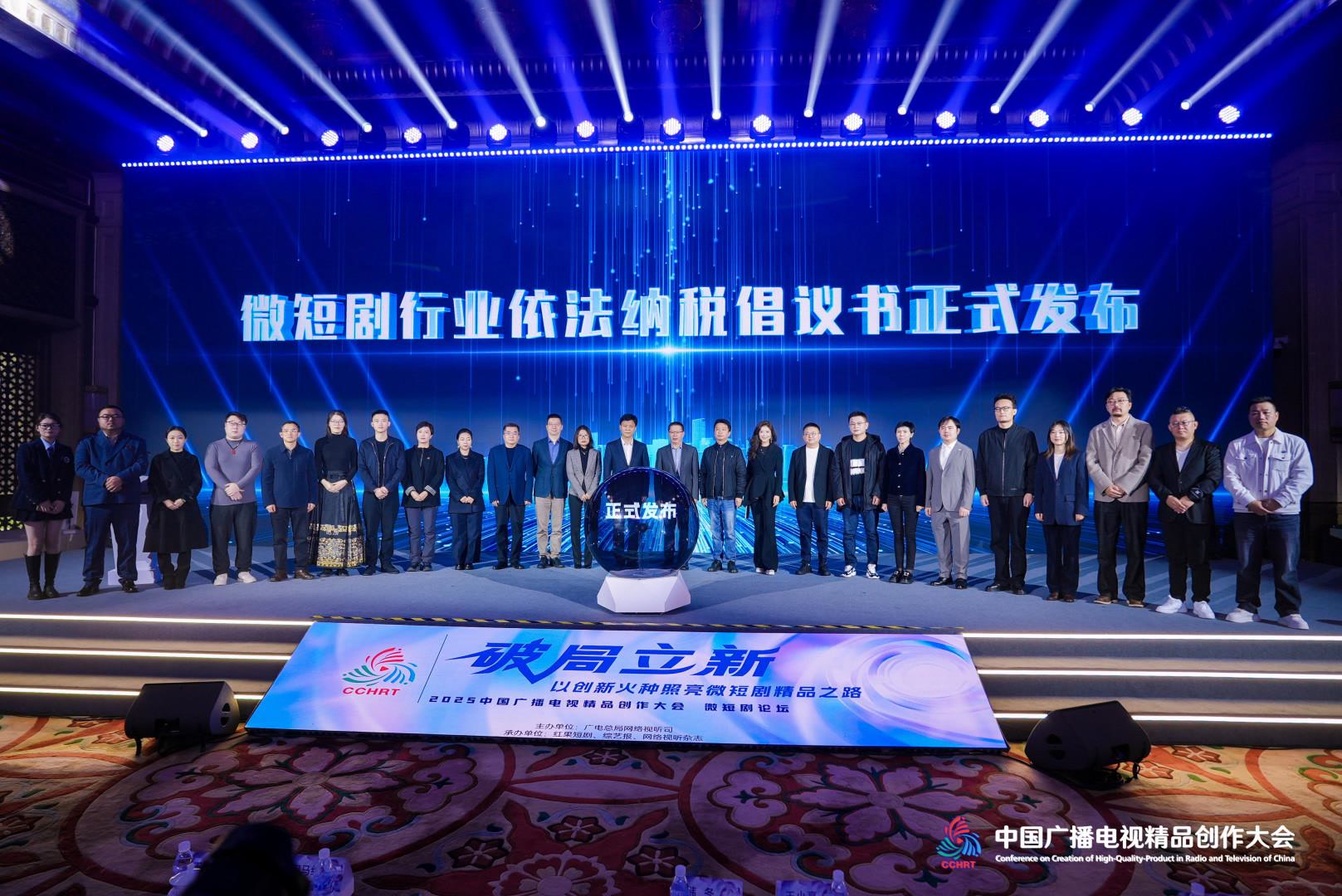 为促进行业规范发展,国家广播电视总局网络视听司联合国家税务总局所得税司,指导中国网络视听协会微短剧工委会发布了《微短剧行业依法纳税倡议书》,抖音集团、咪咕、爱奇艺、腾讯视频、芒果TV、快手等22家平台及制作机构作为首批响应单位集体承诺,倡导依法诚信经营。