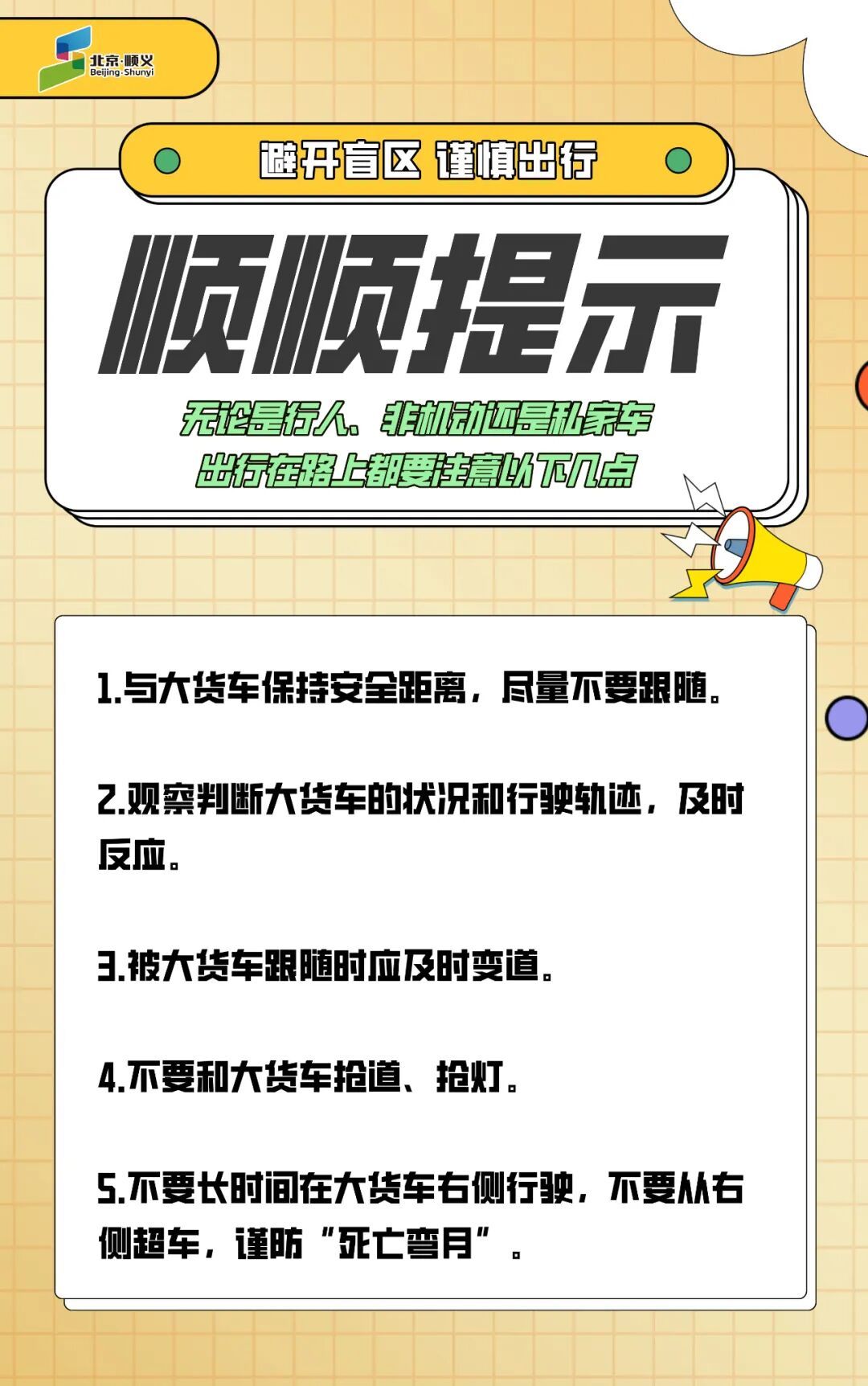 今年以来,顺义公路分局根据大货车右转交通事故高发点位、道路交通设施现状以及货车通行特点,排查梳理出88处中、重型货车流量大,易发生右转弯事故,人车混行现象突出的高风险路口,在88个路口加装提示标志1056个,施划右转停车专用标线18032.96平方米。
