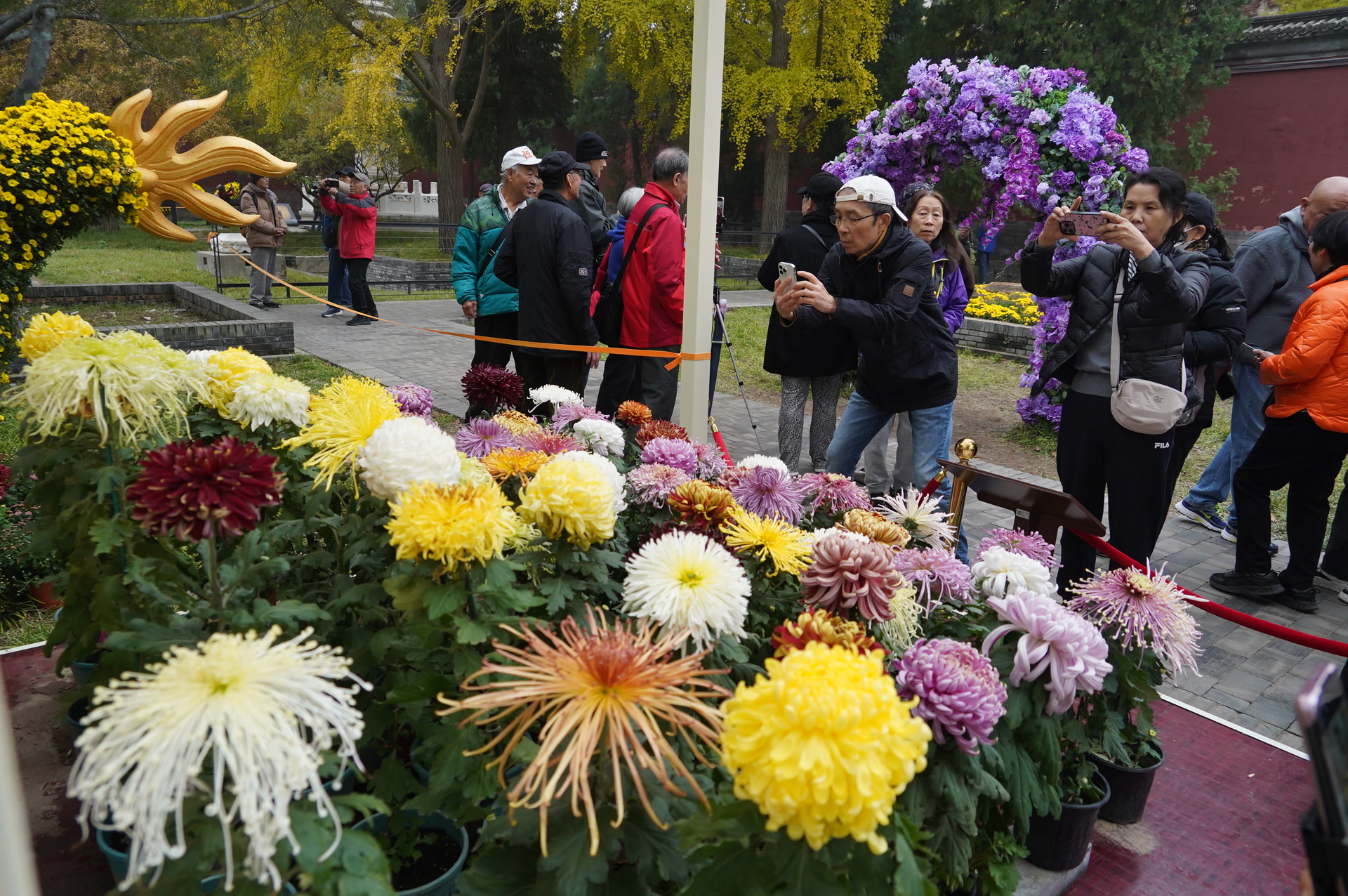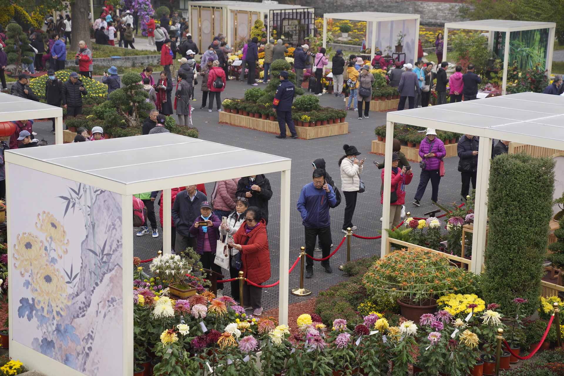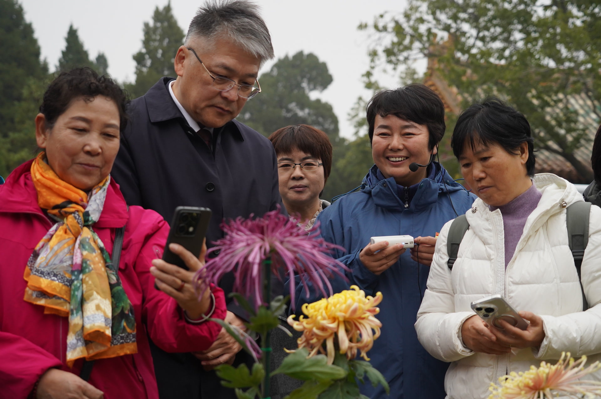 今年的“菊花进社区”活动再添新亮点。北海公园首次联动“鹤年堂”“戴月轩”等非遗老字号,推动菊花文化与传统医药、文房非遗跨界融合。活动还促成多个社区自发成立“菊花兴趣小组”,由“公园主导”转向“群众自主”,形成长效传承生态。