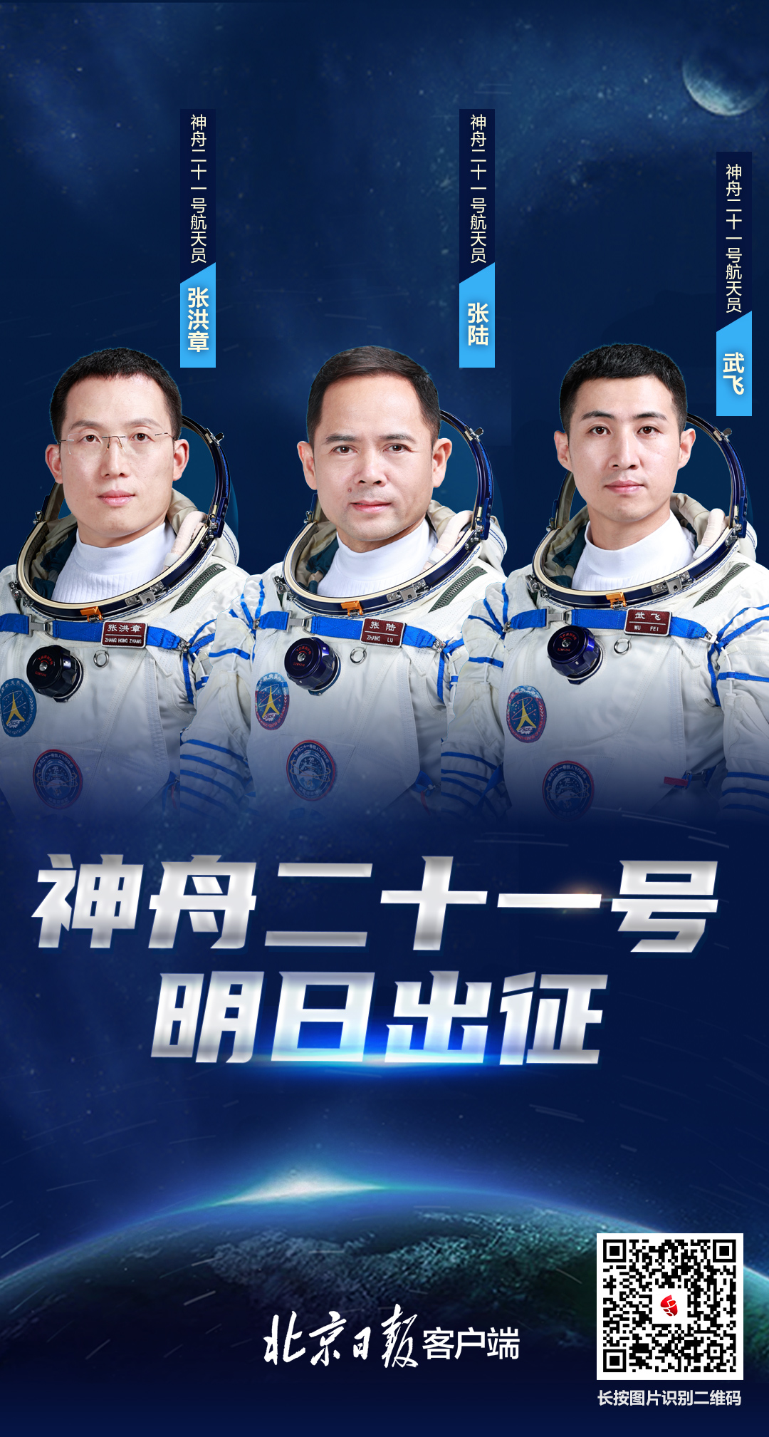 在10月30日举行的神舟二十一号载人飞行任务新闻发布会上,中国载人航天工程新闻发言人张静波宣布,瞄准北京时间10月31日23时44分发射神舟二十一号载人飞船,飞行乘组由张陆、武飞、张洪章组成,张陆担任指令长,3名航天员分别为航天驾驶员、飞行工程师和载荷专家,涵盖了我国现役3种航天员类型。