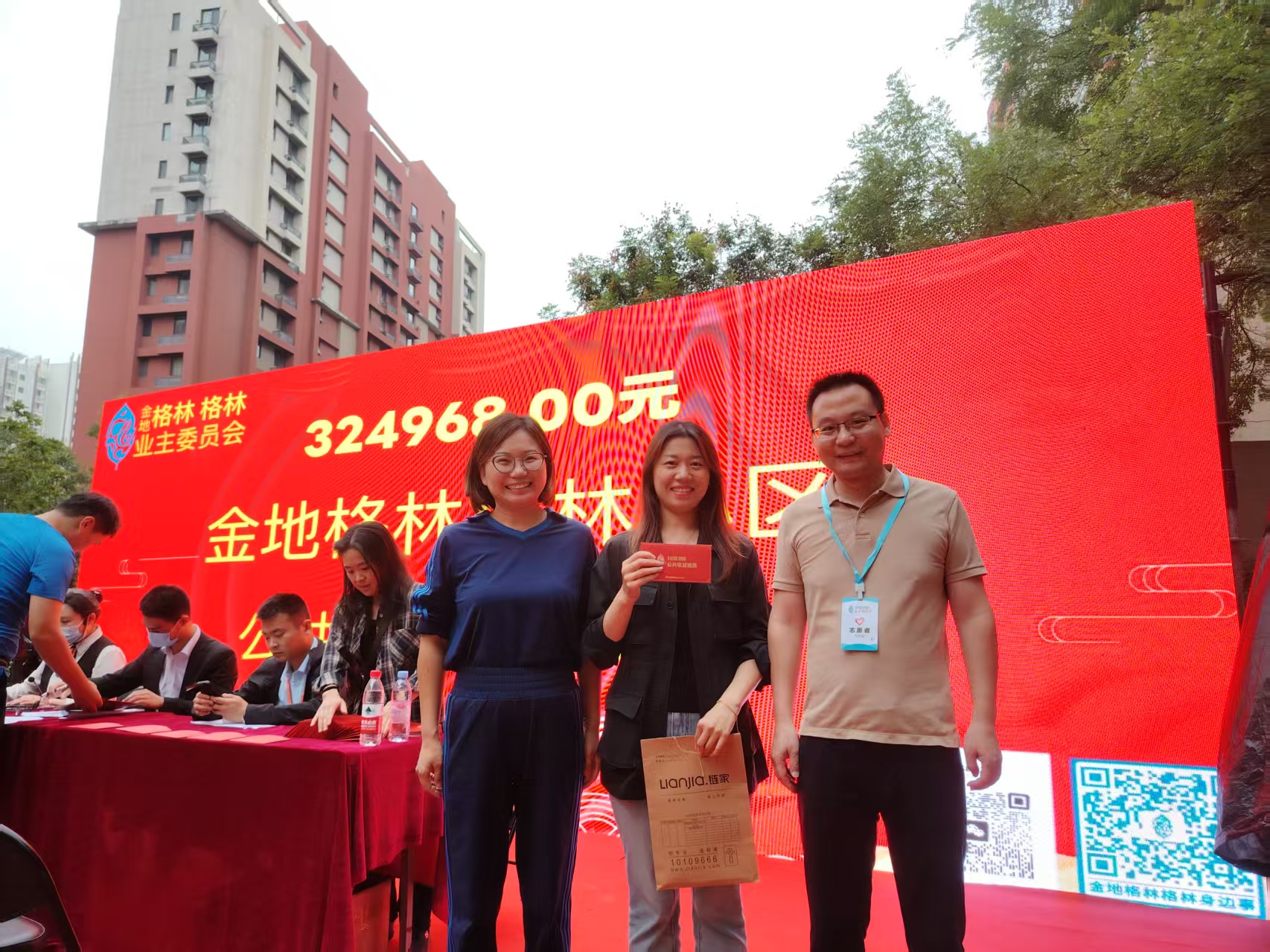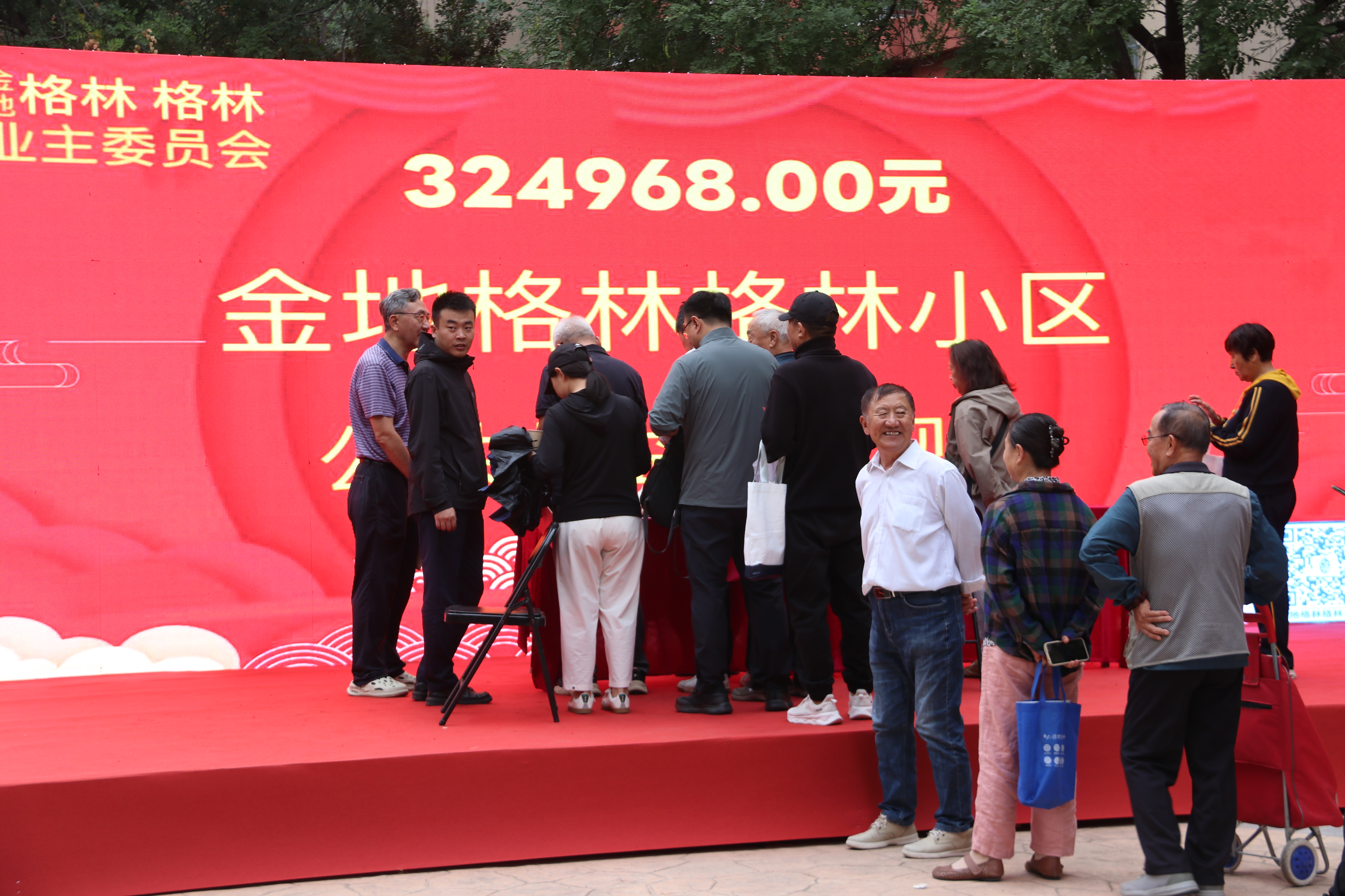 9月27日上午,通州永顺镇金地格林格林小区的小广场上人头攒动,热闹非凡。社区居委会、小区物业、业委会及众多居民齐聚一堂,对小区近五年的公共收益分红进行了公开发放。收到通知的业主陆续来到小区广场,大家签到、领红包、合影,一派其乐融融的景象。