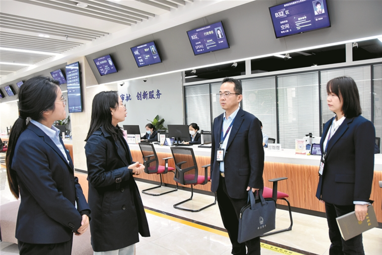 陕西省西安市纪委监委聚焦政策落实不到位、审批许可不作为、监管执法不规范、政商交往不廉洁等问题深化治理,靶向纠治损害营商环境的不正之风和腐败问题。图为近日,该市雁塔区纪委监委干部在区政务服务中心走访了解有关情况。孙道伟 摄