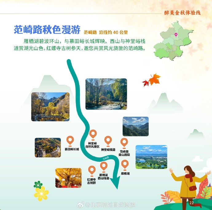 这个秋天,北京悄悄变身啦!三大神仙赏秋路线已上线——“多彩公园”藏着城市温柔滤镜,“金秋画廊”尽显秋日韵味,“斑斓森林”在远山泼洒出绚烂诗篇。