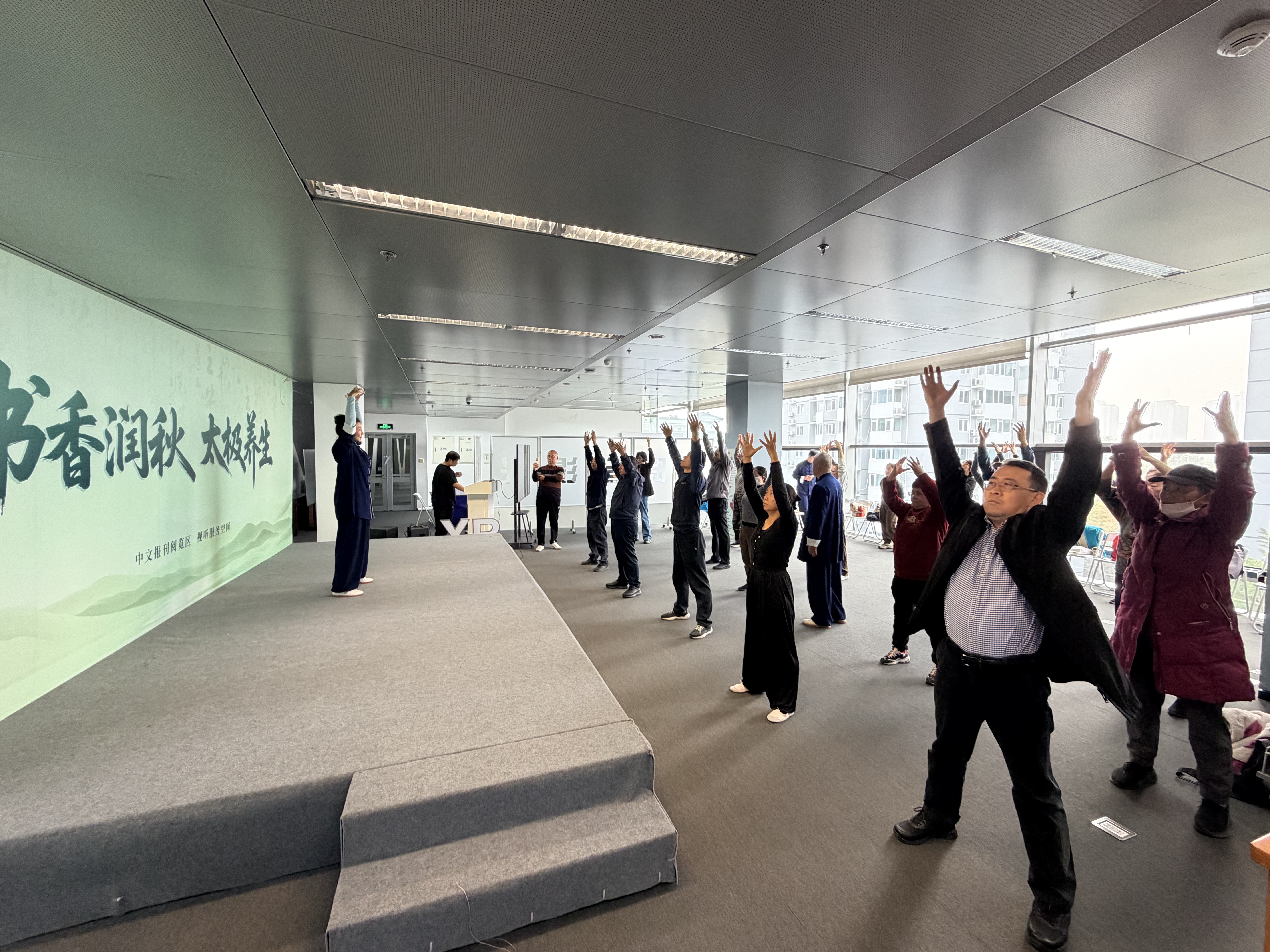 中文报刊阅览区联合视听服务空间精心策划了“书香润秋 太极养生”体验活动。本次活动特邀李氏太极拳第五代传承人张丹、李新现场分享。张丹为读者们进行太极拳相关知识的主题分享,并现场演示李氏太极拳的基本套路和导引术。在两位老师的带领下,现场读者将太极拳的动静结合以行云流水的身法展现,一招一式充分体现了太极拳文化的独特魅力。近期,中文报刊阅览区与中文图书区还布置了“书香润秋养生悦读”主题文献展示专架,包含百余种馆藏图书、期刊和音像资料,助力老年读者健康养生。