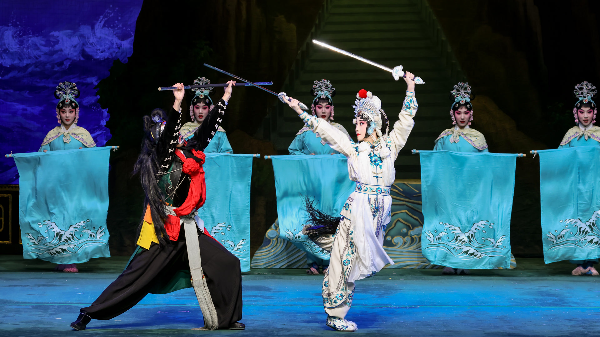 此外,在北京京剧院带领下,《白娘子》还汇聚了特邀艺术顾问、荀慧生大师的嫡孙荀皓,导演刘耀春,执行导演徐帅帅,作曲乔欣等业内多位一线主创。武戏部分作为全剧一大亮点,特邀中国戏曲学院教授年金鹏进行武打设计,打破以往《白蛇传》武戏中“水斗”环节多以小快枪等平缓动作呈现的传统,设计了极具特色的对剑场景,并将唱腔与武打结合,让武戏更具观赏性与冲击力,北京京剧院梅兰芳京剧团优秀武丑演员张青松也为武戏细节的完善提供专业保障。