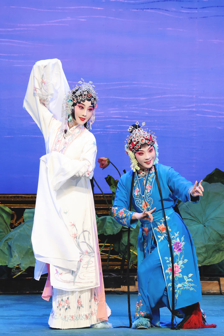 在唱腔表现上,《白娘子》板式丰富,“合钵”段落特别设计了大段二黄唱腔,增强声乐层次,“南梆子”“二六”“流水”等唱段尤其具有荀派韵味,在作曲乔欣的创作基础上,王梦婷加入多年学习荀派的理解与经验进行二度创作。艺术融合的思路也体现在演员阵容中,许仙一角突破多由传统小生演绎模式,由京剧、梆子“两门抱”的天津河北梆子剧团副团长陈亭以女老生身份演绎;小青由浙江京昆艺术中心武旦演员李星星饰演。在王梦婷心中,《白娘子》的复排,不是简单的“剧目重生”,而是荀派艺术“活态传承”的生动注脚,“盼着老戏迷品出荀派的原汁原味,也盼着新观众爱上传统戏曲的独特魅力。”