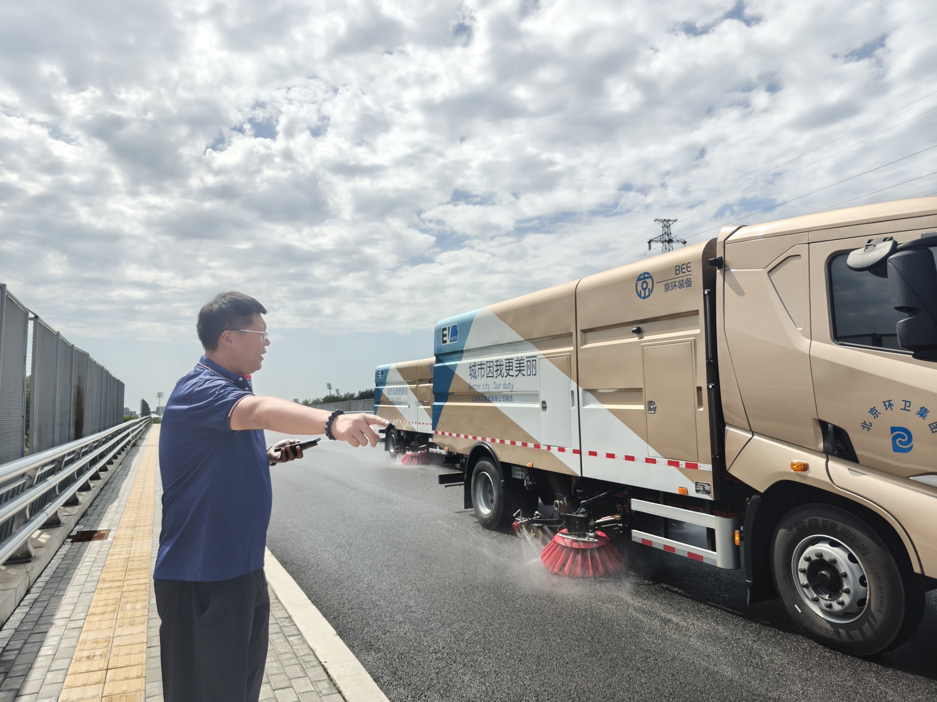 9月3日,在纪念中国人民抗日战争暨世界反法西斯战争胜利80周年大会阅兵仪式正式开始前,来自北京环卫集团的23辆第三代大型纯电动洗扫车组成的方队作为“第零方阵”,对长安街路面进行了深度清洗。李彬,正是这支方阵的领队。