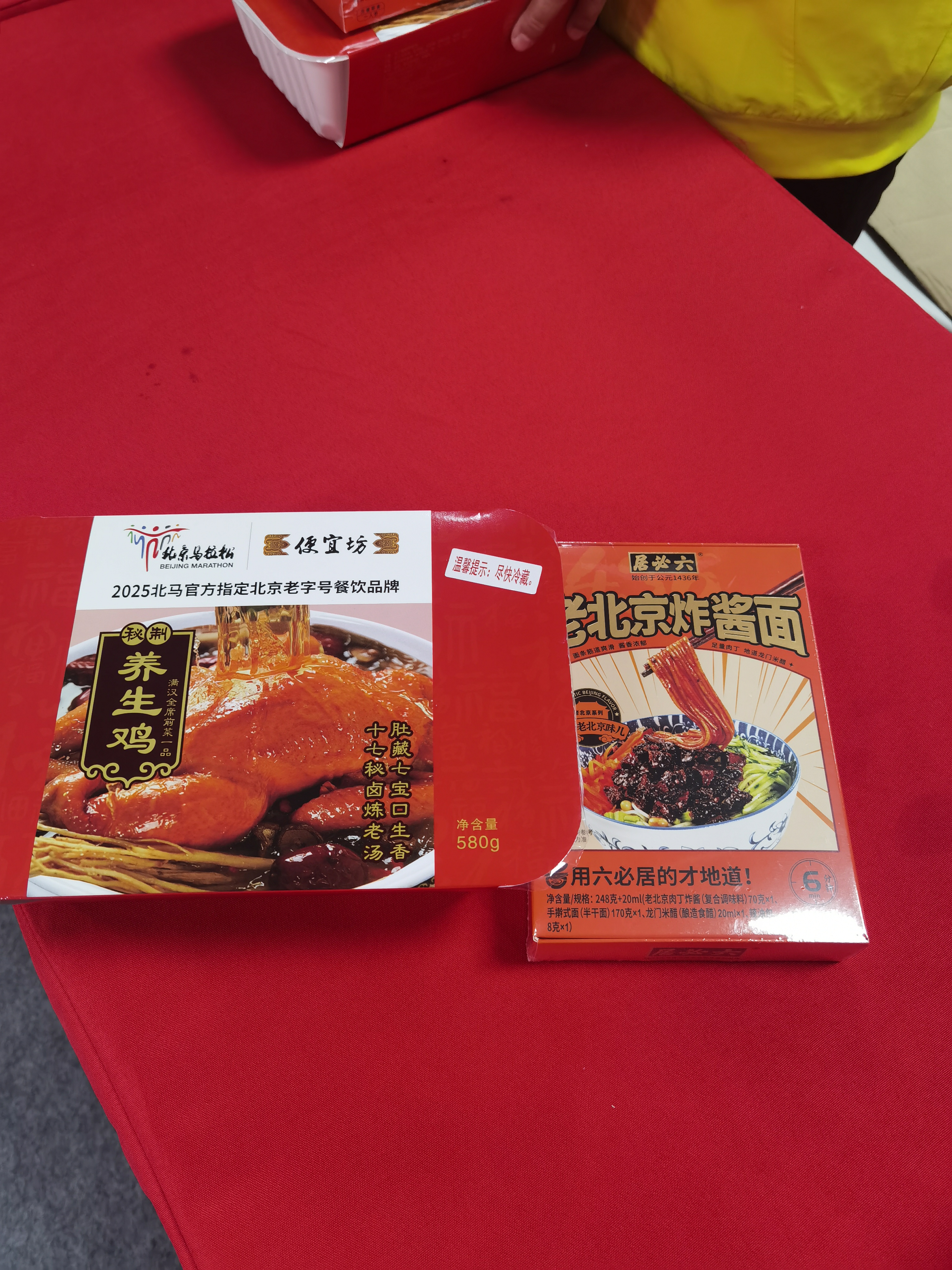 按照组委会要求,运动员需要登录官方网站或官方合作APP预约领物时间,并按照预约时间到达领物地点。到场时,运动员切记要携带本人签署的《参赛承诺书》(纸质版)和报名时所用的有效证件原件。运动员从中国国际展览中心2号门核验身份后进入,在出示电子领物单后进入2号馆。身份核验无误者可打印领物小票,现场共有58个号码布领取窗口,运动员在此提交本人签署的《参赛承诺书》,随后凭领物小票领取号码布。运动员还需完成号码布芯片核验,再凭领物小票领取参赛服。离开领物区的最后,运动员还将领到北京知名老字号生产的烧鸡和炸酱面。
