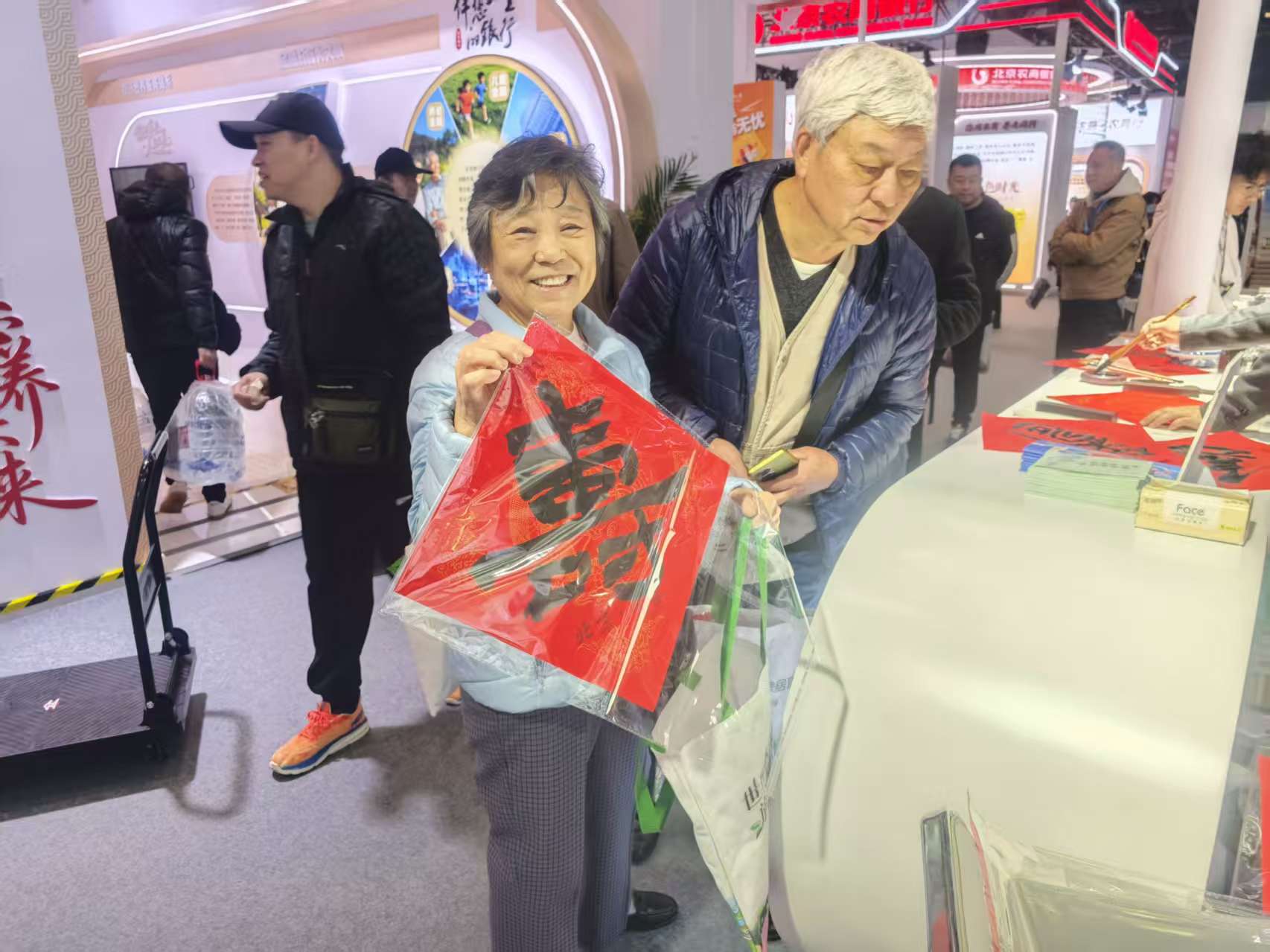 平谷有“中国书法之乡”的美誉,展区每天邀请2名平谷当地书法家挥毫泼墨。老博会的观众参与打卡拍照,就可以领取书法家亲笔书写的“福”字。