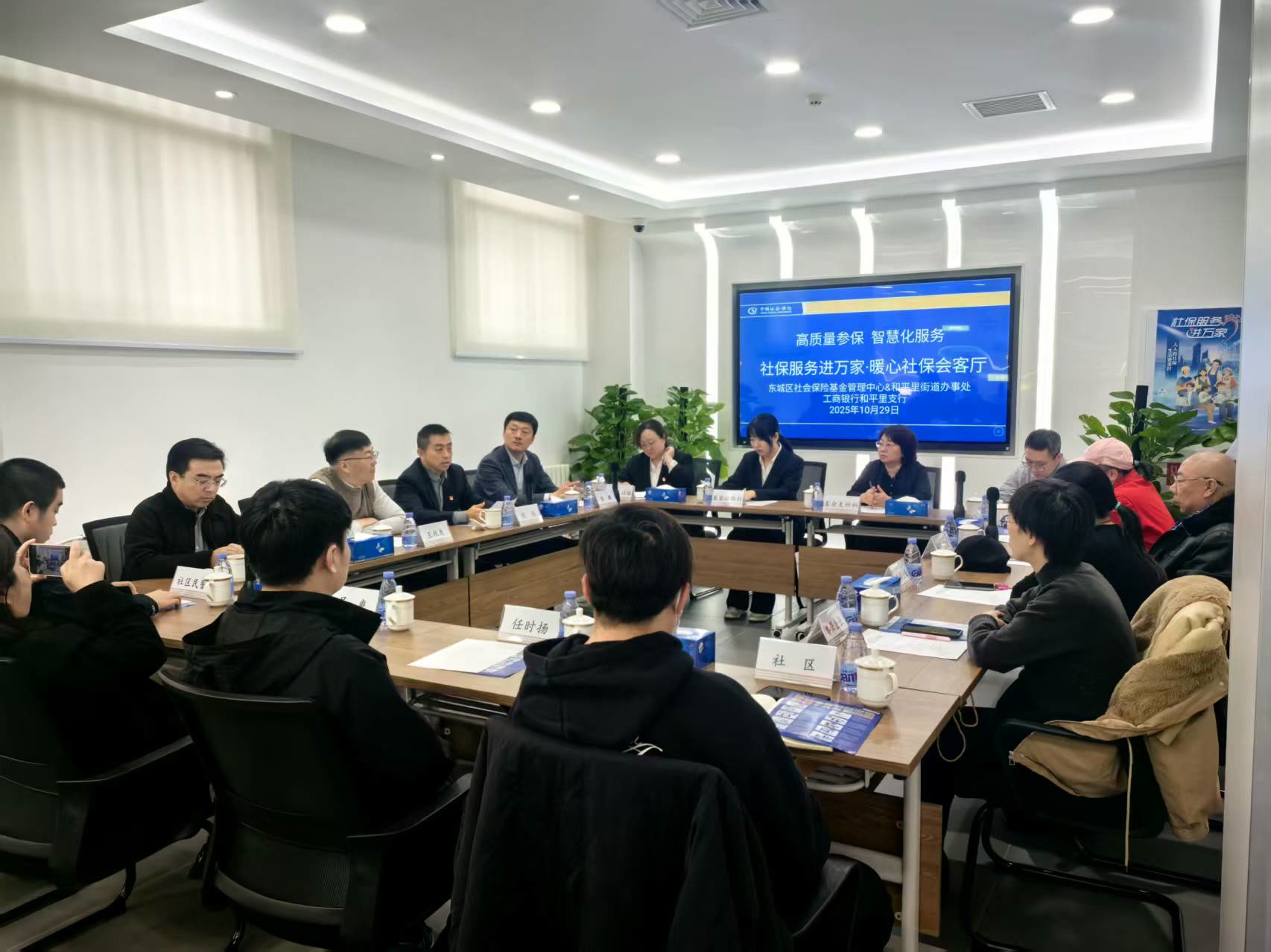 10月23日至29日,“社保服务进万家”活动在全市范围内如火如荼地展开。作为全市系列活动的东城专场之一,一场别开生面的“暖心社保会客厅”在工商银行和平里北街支行温馨开场。社保部门负责人、街道、银行、派出所民警、社区居民和企业代表围坐一堂,围绕“高质量参保”与“智慧化服务”两大主题,展开了一场零距离、有温度的对话。
