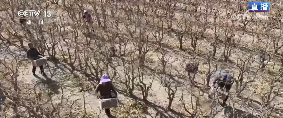 这些是在采收中会用到的工具,先用这种耙子将落地红枣拢在一起,掺杂其中的树叶,用棍子、耙子压碎后装进特制的筛子或是这种有网孔的筐子,通过人工来筛除树叶和尘土。或者是用这样的吹风装置,过滤掉树叶和沙土,红枣就可以直接收拢装筐。这些红枣会先送到晾晒场进行晾晒,再经过清洗、筛选、烘干后,一部分送进加工企业,制成休闲食品和饮料,一部分直接打包发往全国市场。
