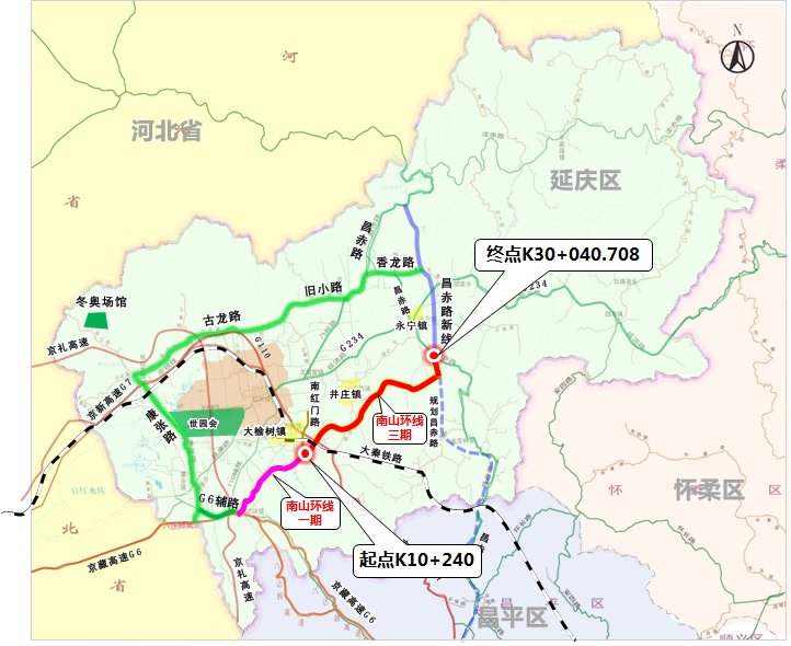 南山环线三期作为延庆区“三横五纵”公路网骨架的重要组成部分,也是延庆区百里骑行专线的重要组成路线。项目最早于2011年提出设想,经历了12年前期谋划、项目立项等准备工作,2023年3月正式开工建设,在近3年的建设之后,终于形成了这条串联延庆东西的重要通道,完成了延庆平原地区大环线的最后一块拼图。