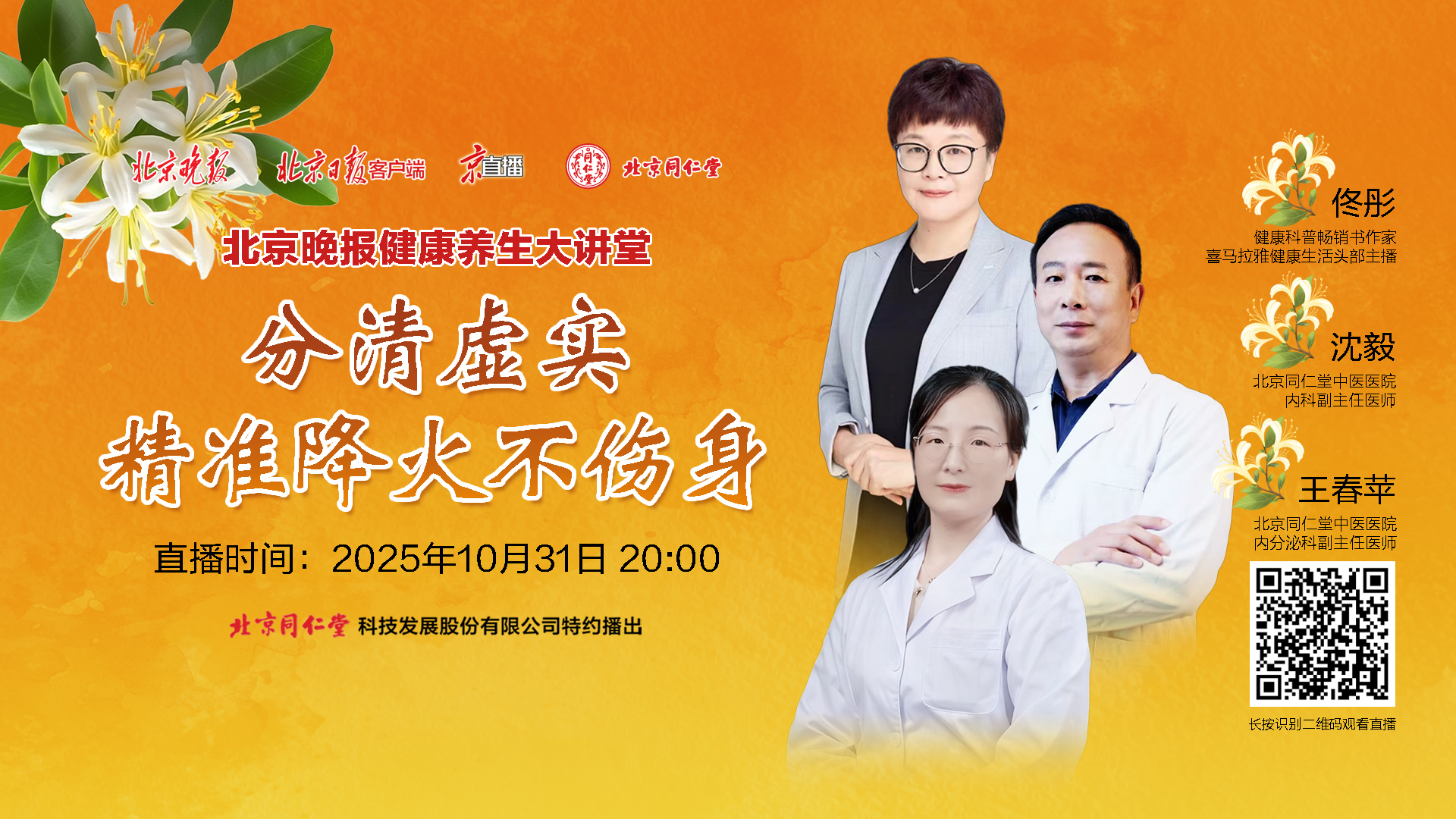 今年,健康养生大讲堂焕新升级,继续陪伴大家一起关注生活中那些不可忽视的健康问题。10月31日,我们将举办一场以“分清虚实 精准降火不伤身”为主题的健康科普讲座,北京同仁堂中医医院内科副主任医师沈毅,北京同仁堂中医医院内分泌科副主任医师王春苹,喜马拉雅健康生活头部主播、健康养生畅销书作家佟彤将做客直播间,共同探讨上火的典型症状以及如何分虚实,并结合患者故事分享实用性强的科学用药、日常养生干货知识,陪伴大家一起健康度过秋冬季。