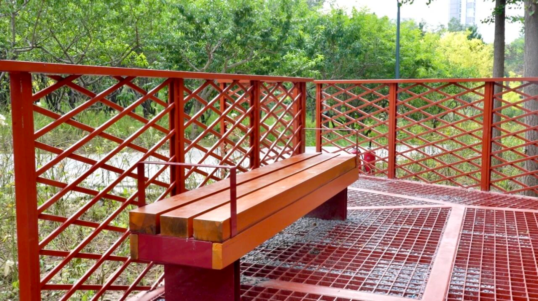 红色瞭望台:醒目的红色钢结构观景台,不仅是一处视觉地标,登台还可俯瞰周边园景,为市民提供全新视角。