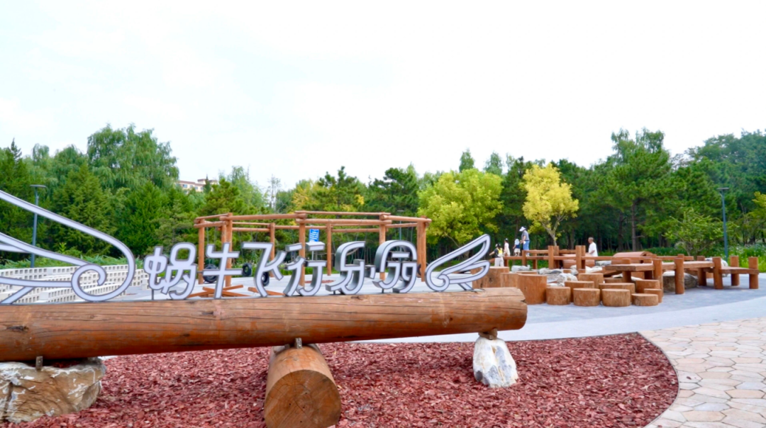 蜗牛飞行乐园:园区巧妙利用废旧木材、轮胎等材料,打造出蜗牛造型的亲子乐园,增加木凳子、木桩爬架、秋千、台阶式休闲座椅等设施,其互动性的创意设计深受孩子们喜爱。