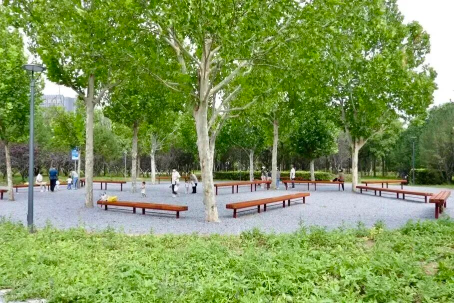 法桐迷宫:依托现有法桐树林,布置环形座椅,形成林荫下的“迷宫”小径,营造出静谧有趣、清凉宜人的漫游体验。