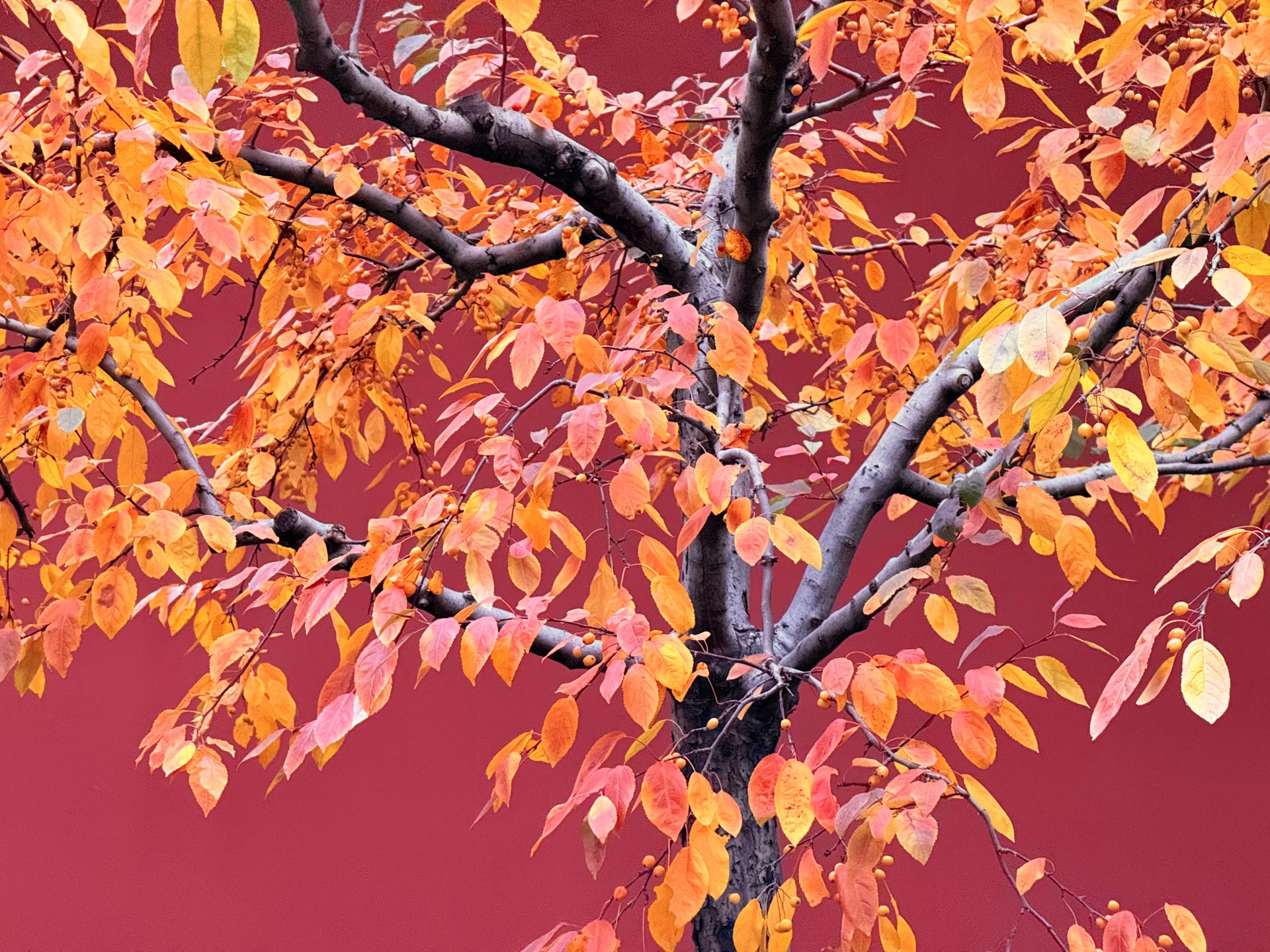 10月31日,深秋清晨的北京寒意渐强。微风轻拂中,树叶摇曳摆动,各种色彩交织在一起,饱和度拉满,赋予整座城市无数的秋日美景。