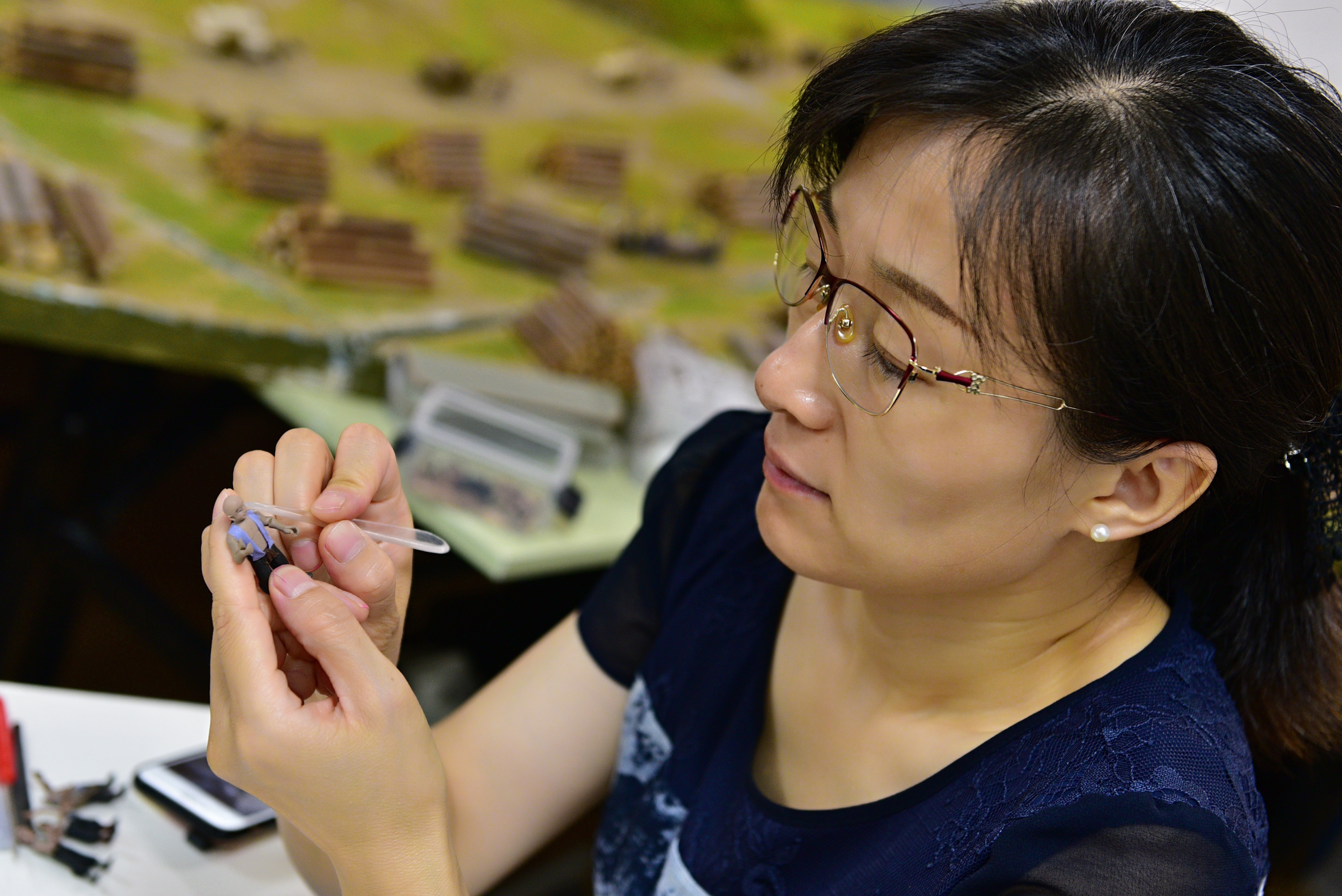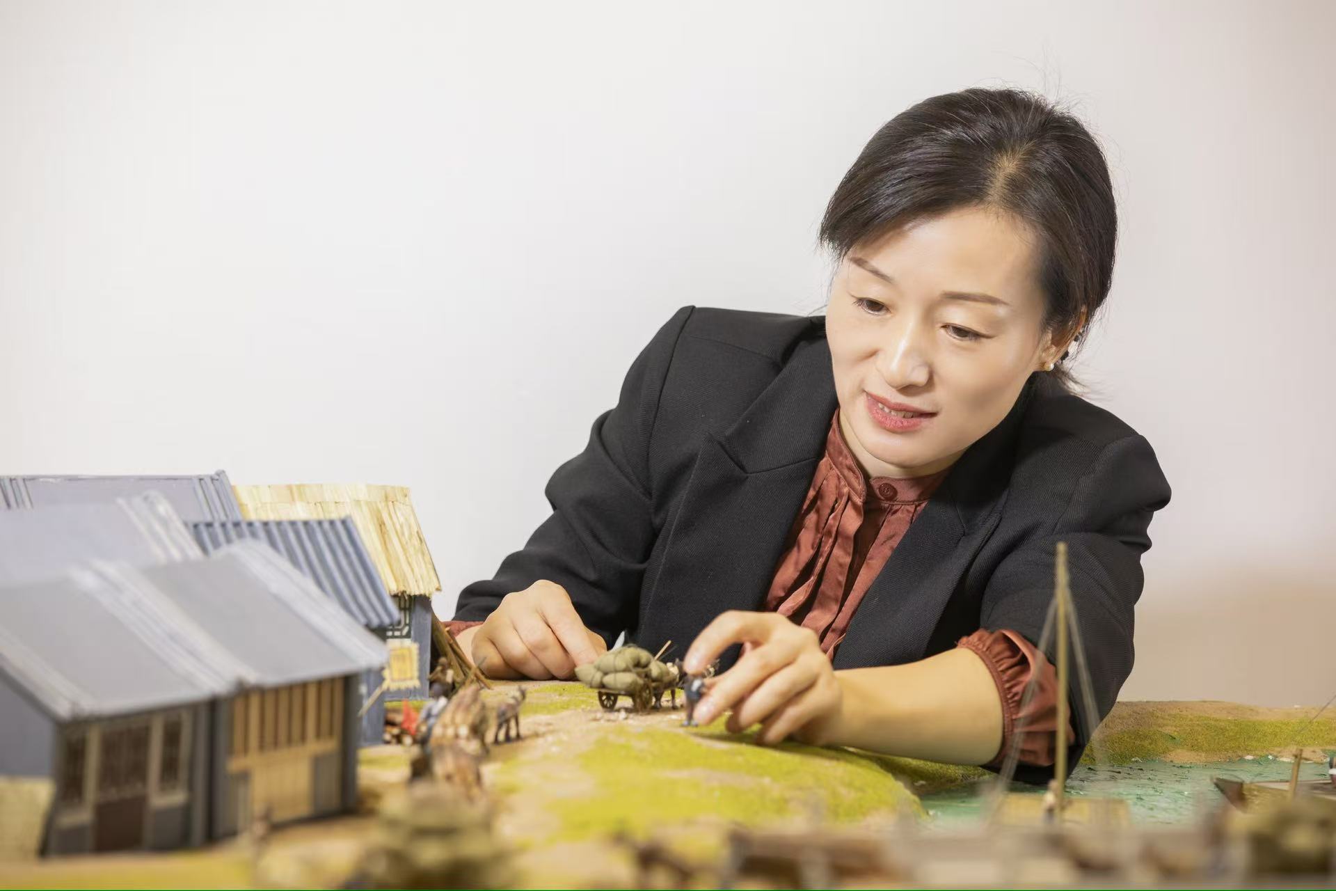 运河上来来往往的各种船只,通运桥上川流不息的一众马车,岸边忙碌的纤夫船工,城门前收税的官员民兵,岸上驻足的达官贵人及家眷,就连通运桥上的石狮子、分水石、镇水兽、栏板内外的浮雕宝瓶等也都活灵活现……这不是电视剧或电影里的场景,而是陈艳玲花费两年时间,耗费许多精力和巧思制作而成的通州大运河面塑作品。整个作品面积达16.32平方米,涉及人物超300个,马车、马匹、船只、房屋、城门城墙、通运桥等历史元素一应俱全。小面塑展示的大历史全在这些细节里。