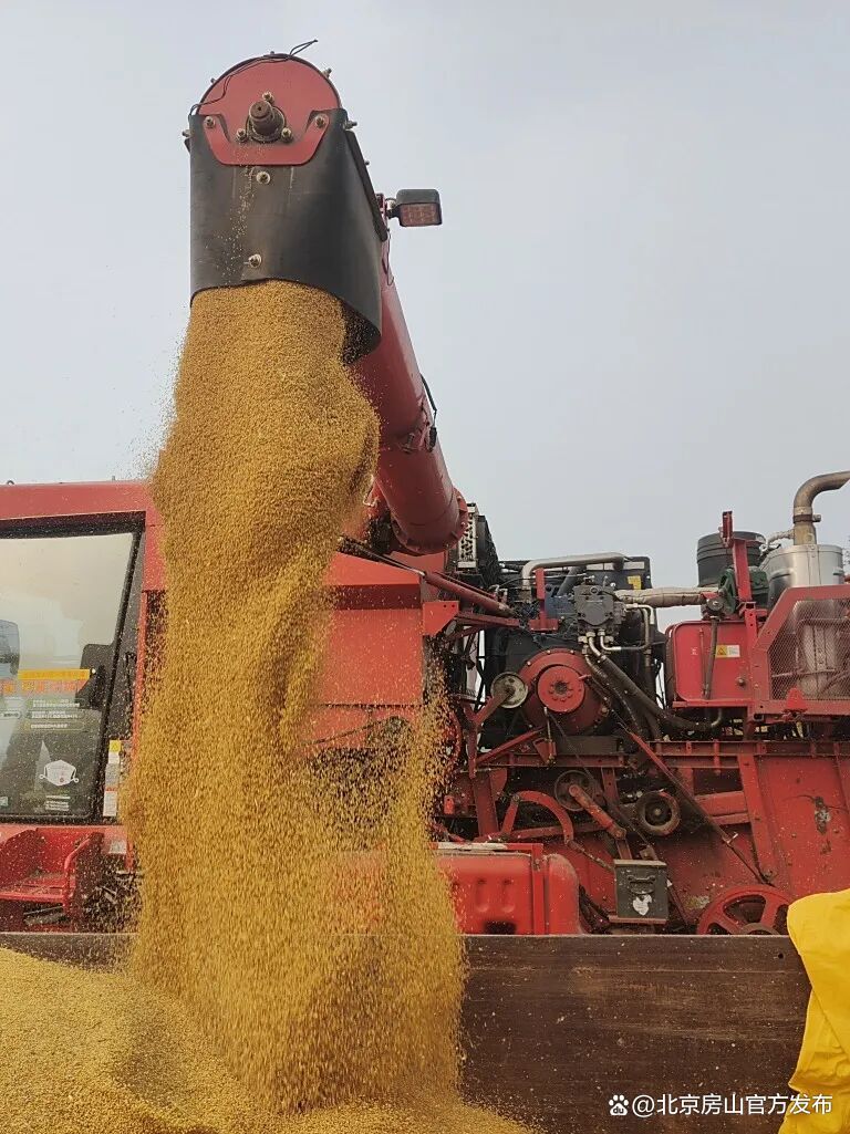 近日,琉璃河“召公粟”开始收割,大型收割机在田地中来回穿梭,发出阵阵轰鸣声。随着机器的作业,金黄的粟穗被卷入机器,饱满的粟粒顺着传输管道倾泻而下,装满了等候在旁的运输车辆。粟米颗粒饱满、色泽金黄,煮成的米饭米香浓郁、口感软糯。