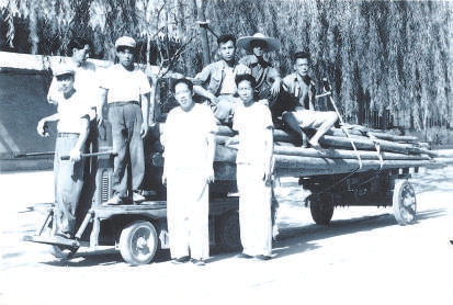 20世纪50年代单士元(后排左一)与王璞子(前排左二)等同工人一起运料
