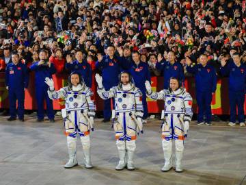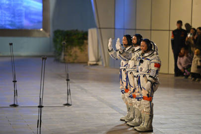 10月31日晚,神舟二十一号载人飞行任务航天员乘组出征仪式在酒泉卫星发射中心问天阁圆梦园广场举行。神舟二十一号航天员张陆、武飞、张洪章领命出征,一起祝福!