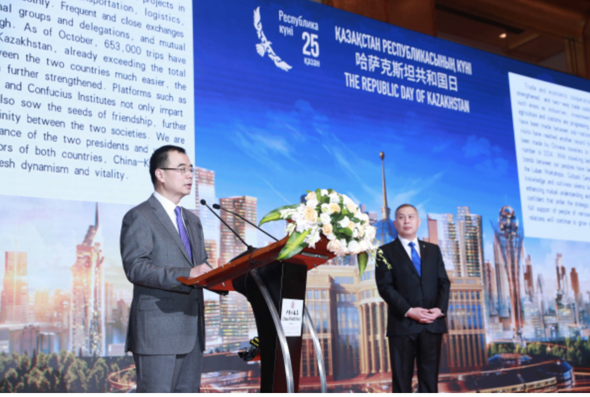 刘彬祝贺哈萨克斯坦共和国日并表示,在习近平主席和托卡耶夫总统的战略引领下,中哈关系发展硕果累累。今年,两国元首两度会晤,达成广泛共识。上周,中共二十届四中全会胜利召开,对“十五五”时期中国经济社会发展作出顶层设计和战略擘画,也对推进中国与世界各国互利合作带来新机遇。中方愿同包括哈方在内的各方加强协调沟通,深化互利合作,推动构建更加公正合理的全球治理体系,携手迈向人类命运共同体。