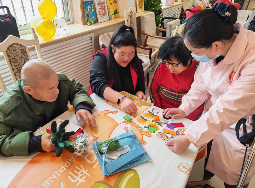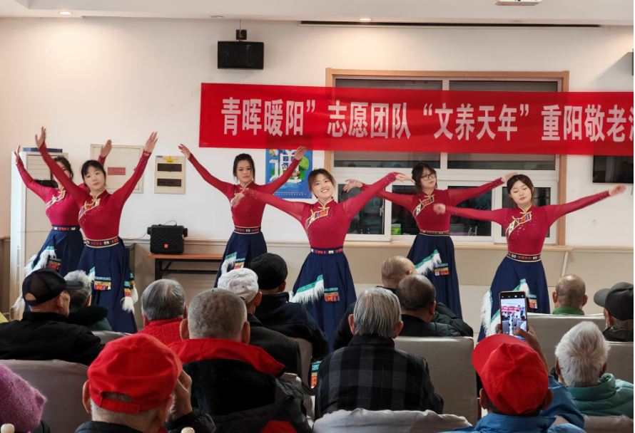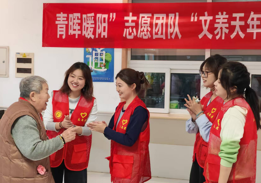 重阳节之际,北京财贸职业学院学前教育专业大学生志愿者“青晖暖阳”团队到通州区梨园镇敬老院开展以“文养天年”为主题的重阳敬老活动。