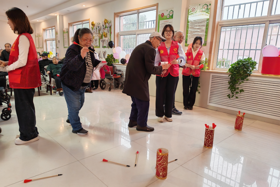 志愿者们为老人们带来了精心编排的小节目。节奏明快、寓意祥和的藏族堆谐舞蹈《库马拉》,刚柔并济、余韵绵长的《二十四太极拳》,化繁为简、养生健体的《八段锦》,大学生们的表演洋溢着青春气息,倾注了真挚情感,台下老人们报以阵阵掌声。最后师生和老人们同唱《我和我的祖国》,以歌声表达对祖国的热爱,对幸福生活的珍惜。老人们纷纷说“节目真好,这些孩子真好,这样过节真好。”趣味老年运动会把节日气氛推向了高潮。趣味问答、掷沙包、投箭壶、套圈、做手工......老人们聚在每一个项目周围,跃跃欲试,一展身手。