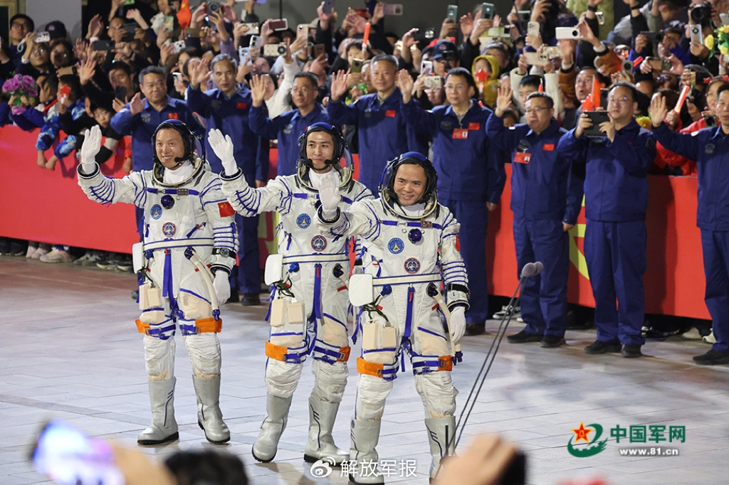 “向航天员学习!向航天员致敬,祝你们成功,等你们凯旋!”广场两侧,挥舞的国旗和闪烁的荧光棒形成了一条绚丽的“星光大道”,夜色中的每一束光、每一声呐喊,都汇聚成对航天英雄最温暖的陪伴。一名现场观众难掩激动:“看到他们走出来的那一刻,整颗心都沸腾了!这就是我们中国人的‘追光天团’!”