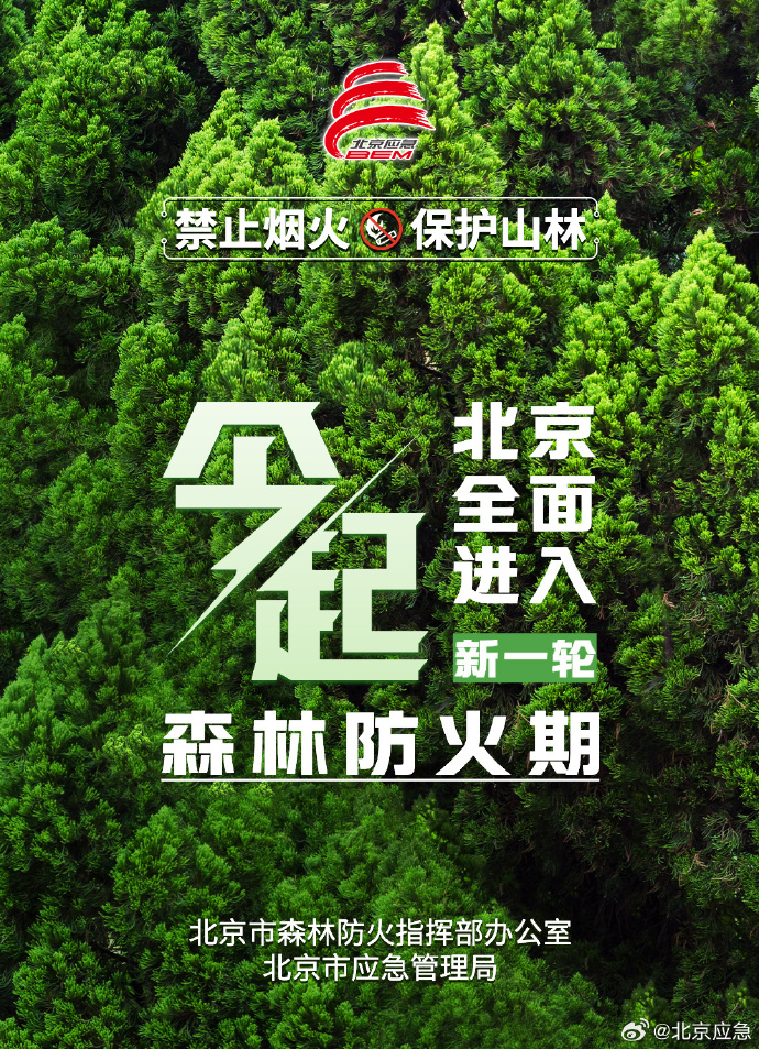11月1日起北京进入新一轮森林防火期。秋冬季节风干物燥,森林火灾风险上升,请广大公众不要携带火种火源进入林区,严禁一切违规用火行为!