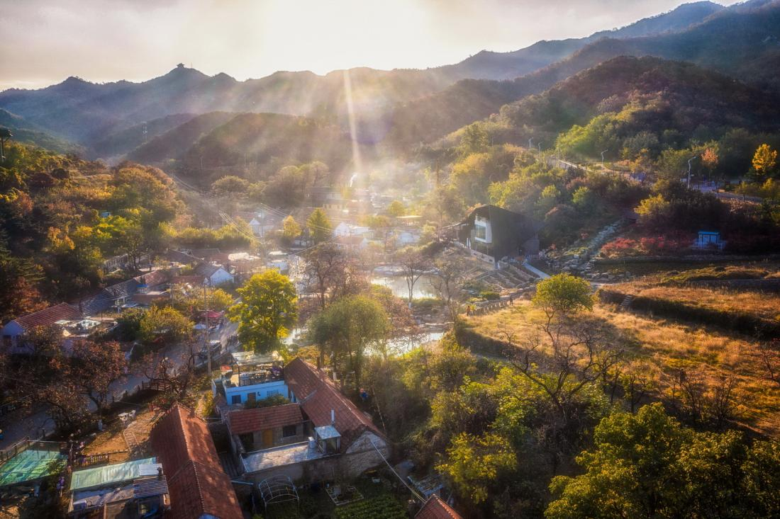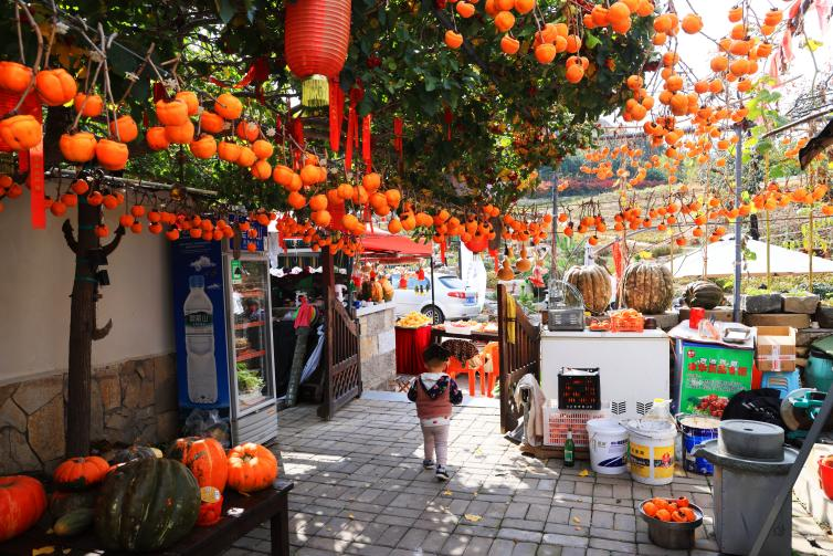 沿着蜿蜒小径走进山中,徒步的热意被秋日清风悄然驱散。沿途绿树成荫,秋果累累,屋舍错落,多彩的如画风景与宁静的生活交织起令人心生向往的画卷。