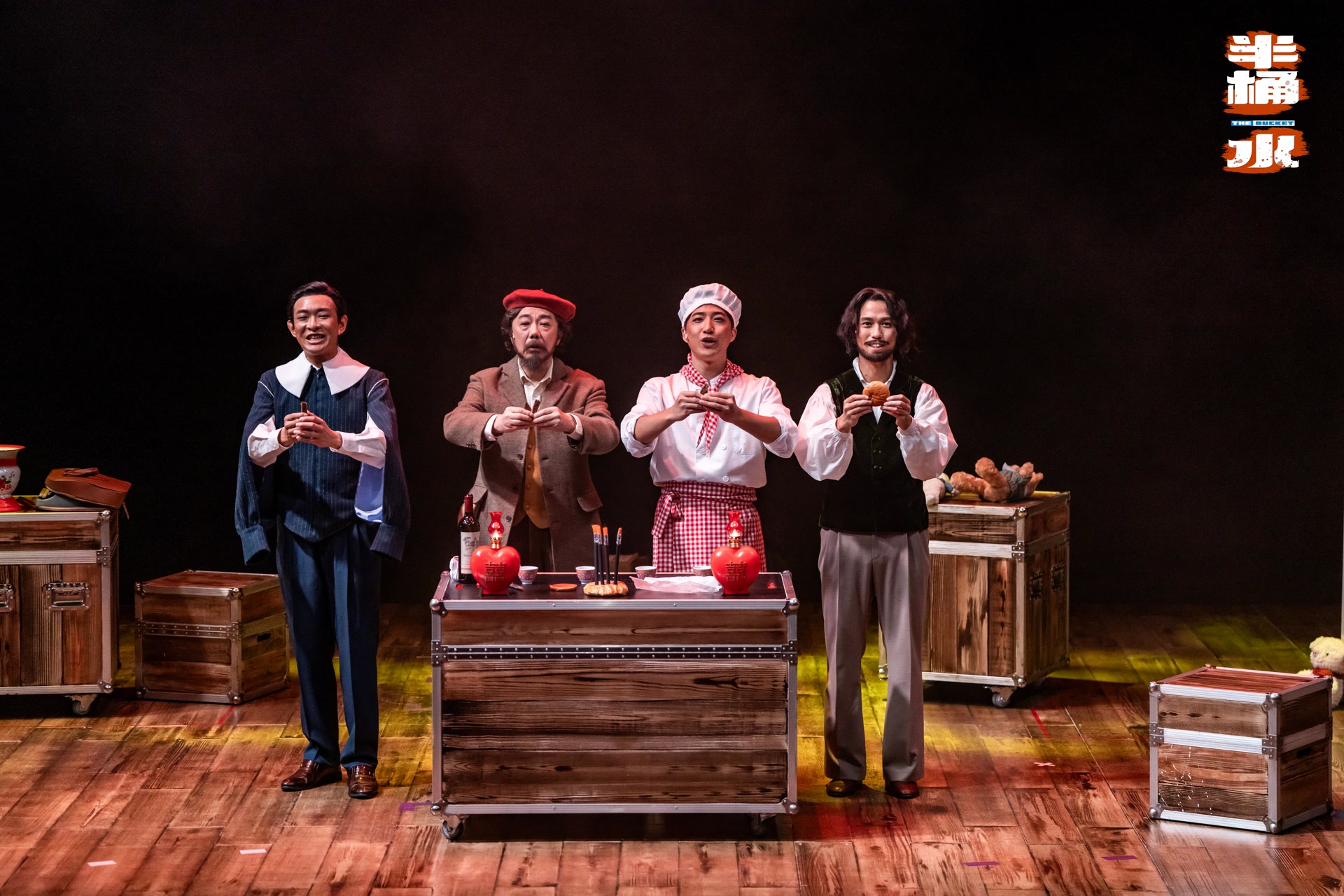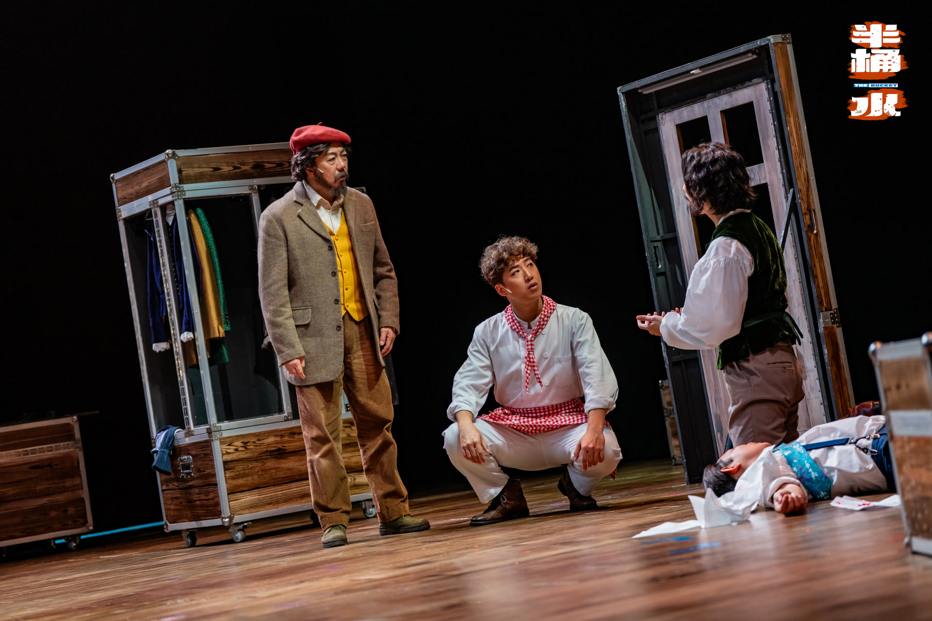 此前,香港话剧团来京演出过粤语版的话剧《天下第一楼》和音乐剧《大状王》,粤语的多变声韵给表演增色不少。而在《半桶水》中,演员们故意用荒腔走板的粤语发音,模仿外国人说中文的语调,不仅制造发音的笑料,也符合“戏中戏”的设定,为最后的反转埋下包袱。只是可惜,对于不熟悉粤语的北方观众,大概率无法捕捉这一层意义。