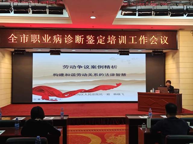 门头沟法院民事审判一庭庭长韩晓飞应北京市卫生健康委员会邀请,在全市职业病诊断鉴定培训工作会议上,以“劳动争议案例精析:构建和谐劳动关系的法律智慧”为题,解析劳动争议典型案例,助力职业病防治工作,为全市八十余名职业病诊断与鉴定一线工作者带来一场内容详实、指导性强的专业讲座。