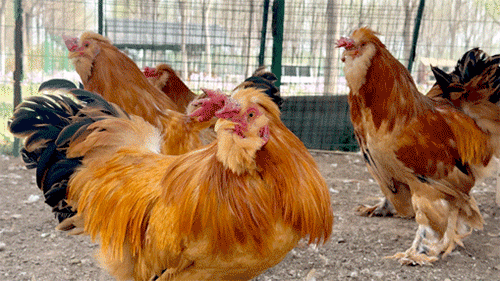 北京油鸡比普通鸡类多了一个脚趾,在丰满羽翼的“加持”下,走起路来自带威风,再加上凤头、毛腿、胡子嘴,羽黄、喙黄、小黄腿,具有“三毛”和“三黄”的特征。