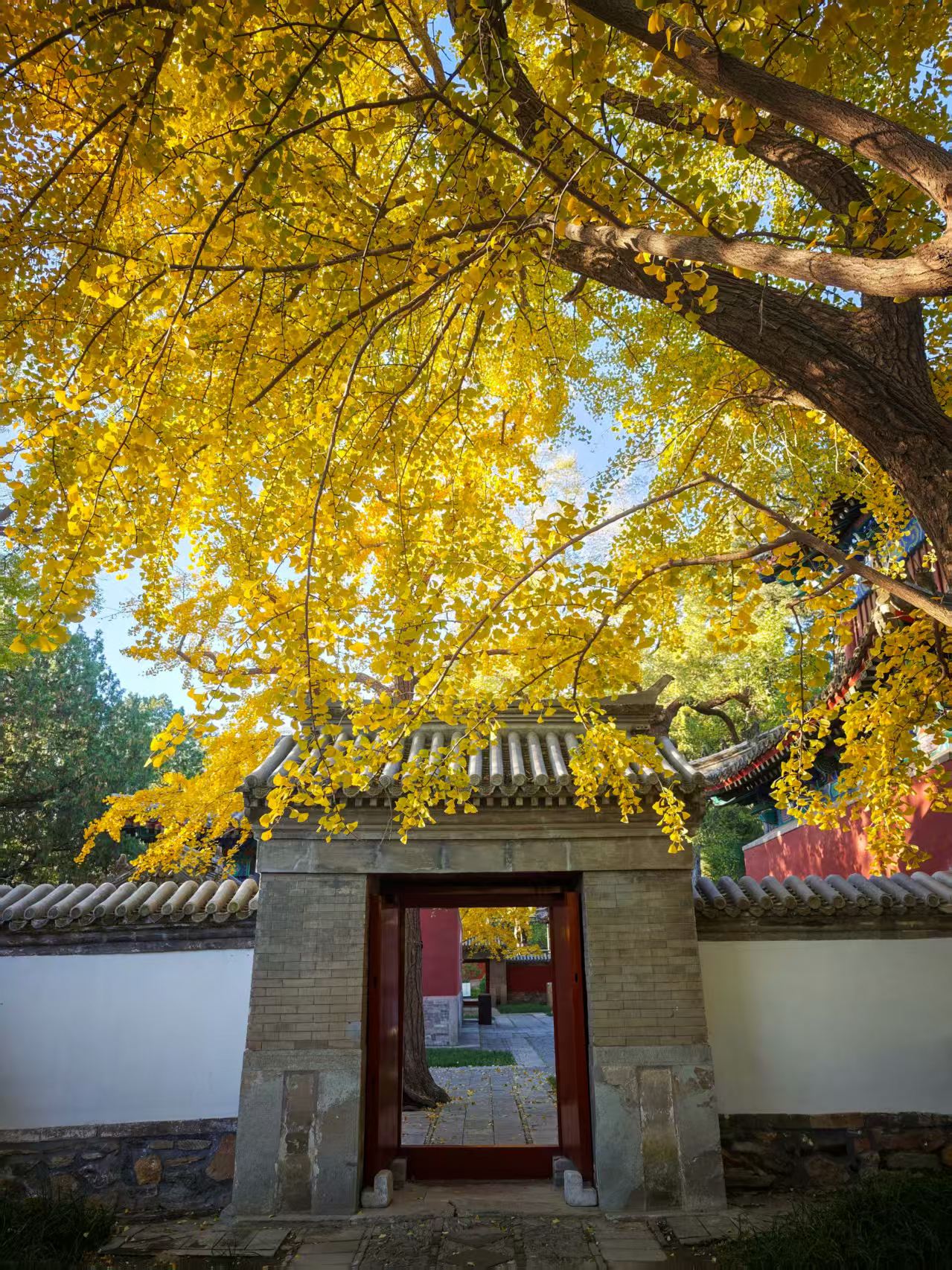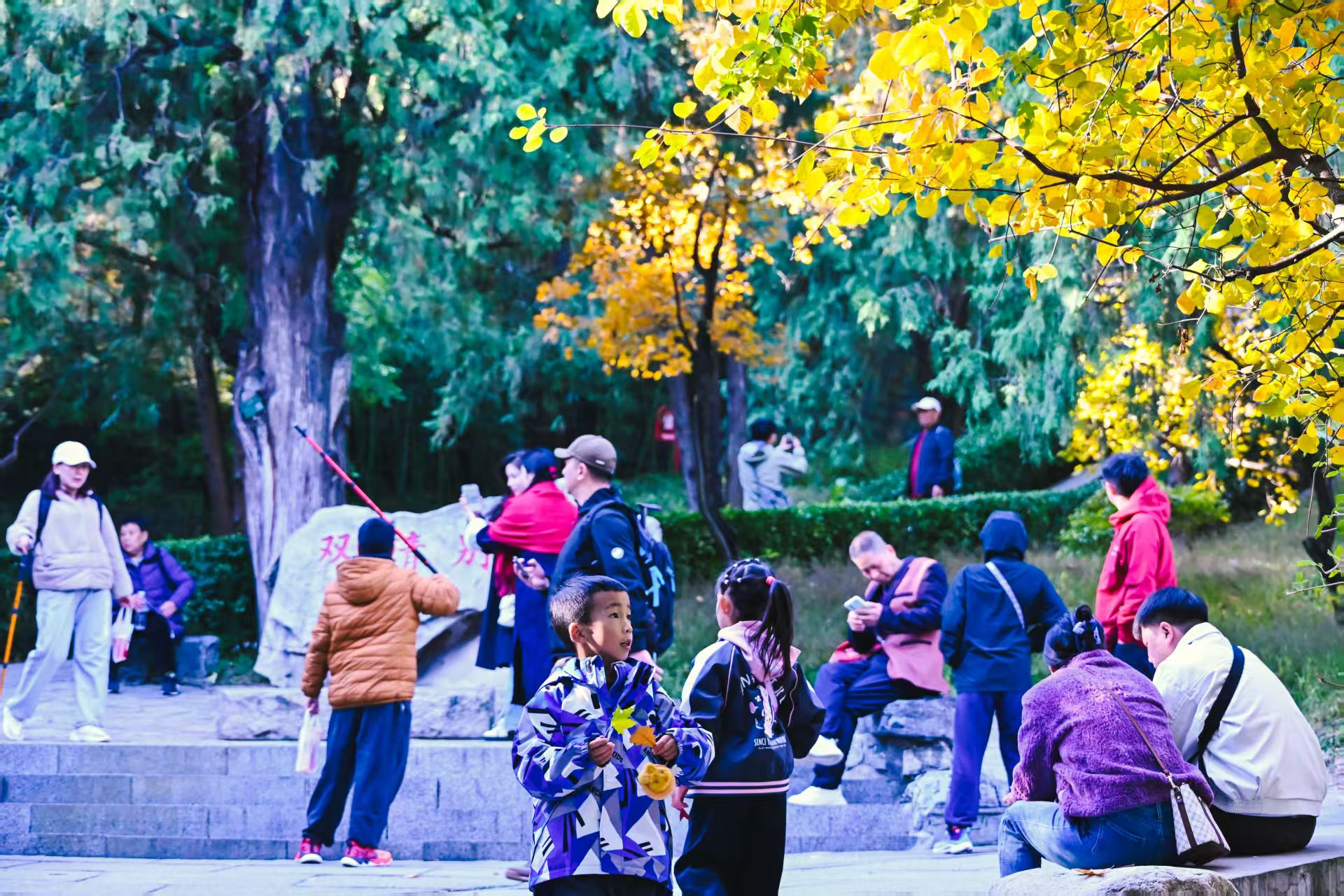 如想寻一处更静谧之地,可移步至公园北线的碧云寺,途经“最美园路”,沿途设置多处精美“花境”和“打卡板”,寺内的含青斋、涵碧斋及钟鼓楼区域,古银杏与百年古建相守相依。金黄的叶片映衬着石刻与飞檐,处处成画,步移景异,为您的香山秋游画上一个充满诗意与历史韵味的句点。
