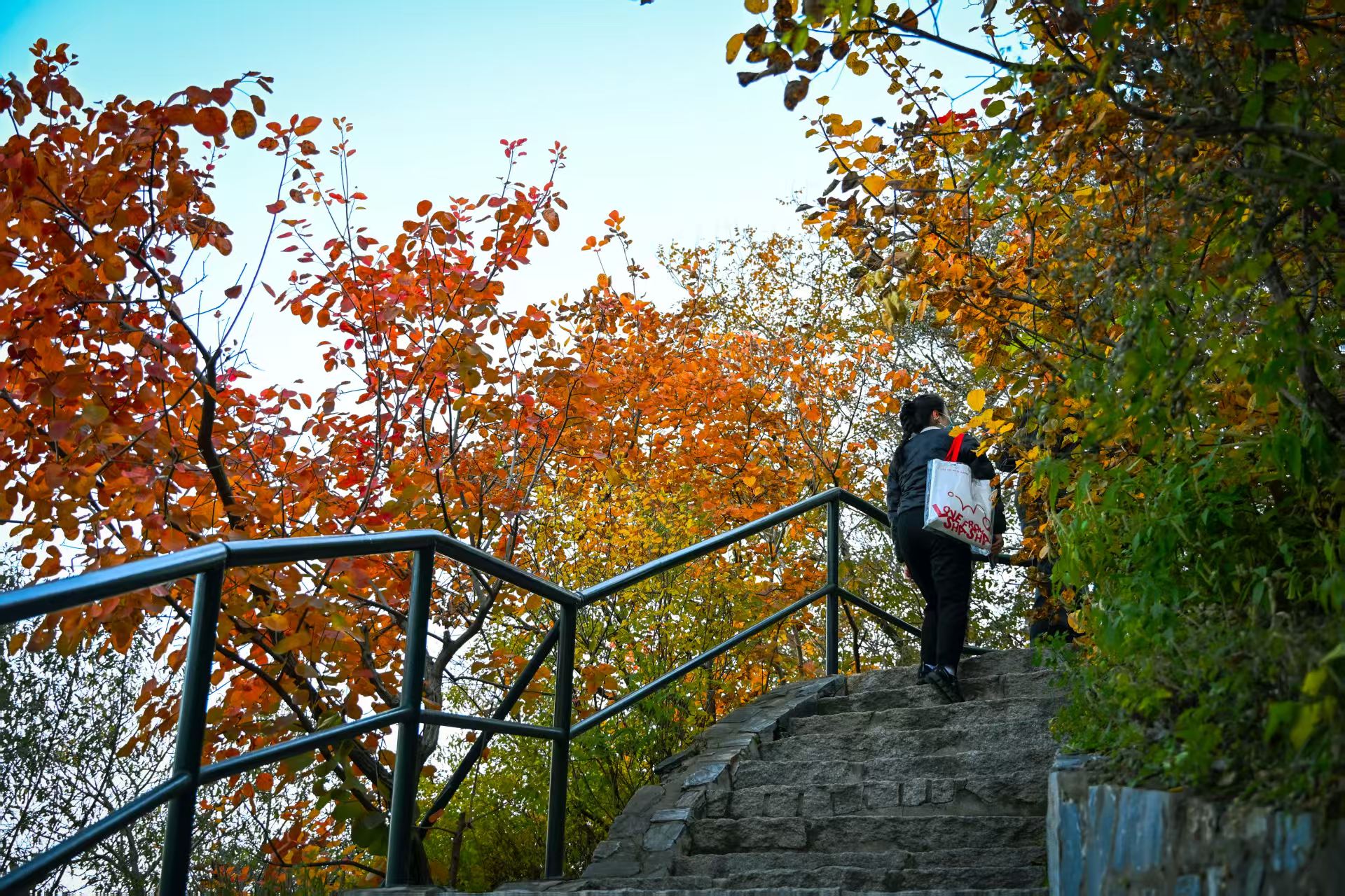 山林朝市两茫然,红叶黄花自一川。此般意境,在这个周末的香山化作了触手可及的现实。园内彩叶变色率已至60%,正值最佳观赏期。据香山公园红叶物候观测小组监测,若无特殊天气变化,香山彩叶还将持续一周左右。