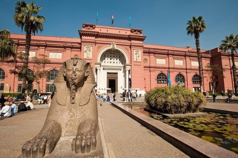 在埃及,现代日常生活的背后,还有一个可见的逝去时代:几何般静默、尖顶的庞然身影从沙漠地平线升起,在一栋栋公寓楼间若隐若现。米色之上叠着米色,在蓝天背景下格外醒目。面对这些距今已有4500年历史的人造奇迹,让人无法淡定。而在吉萨金字塔近旁,大埃及博物馆散发出威严与秩序感,使其从喧嚣混乱的首都脱颖而出。
