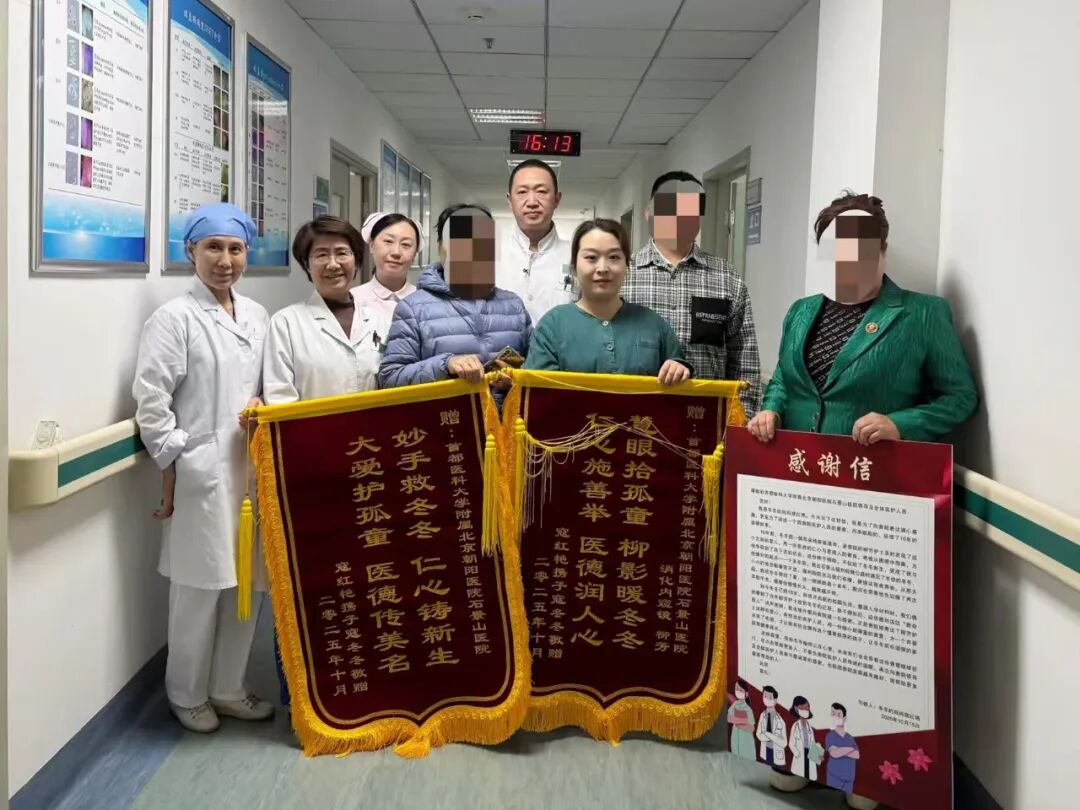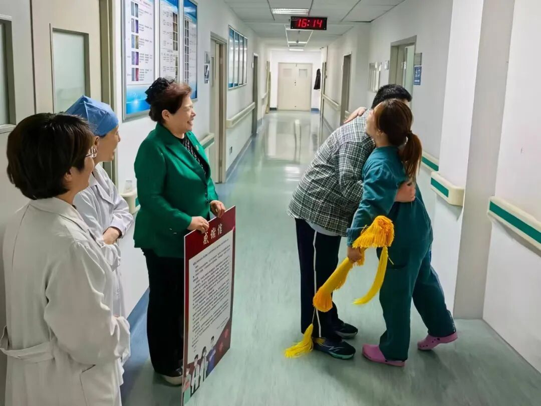 这份跨越十六年的牵挂与感恩,深深打动了柳芳及当年所有参与救助的医护人员,于是,一场温馨的见面在我院上演。当天,冬冬和寇大姐带着锦旗来到医院。消化内科张莉主任还专门邀请了耳鼻喉科王弦主任,以及当年为他进行查体的儿科李翠萍主任,共同见证这次重逢。