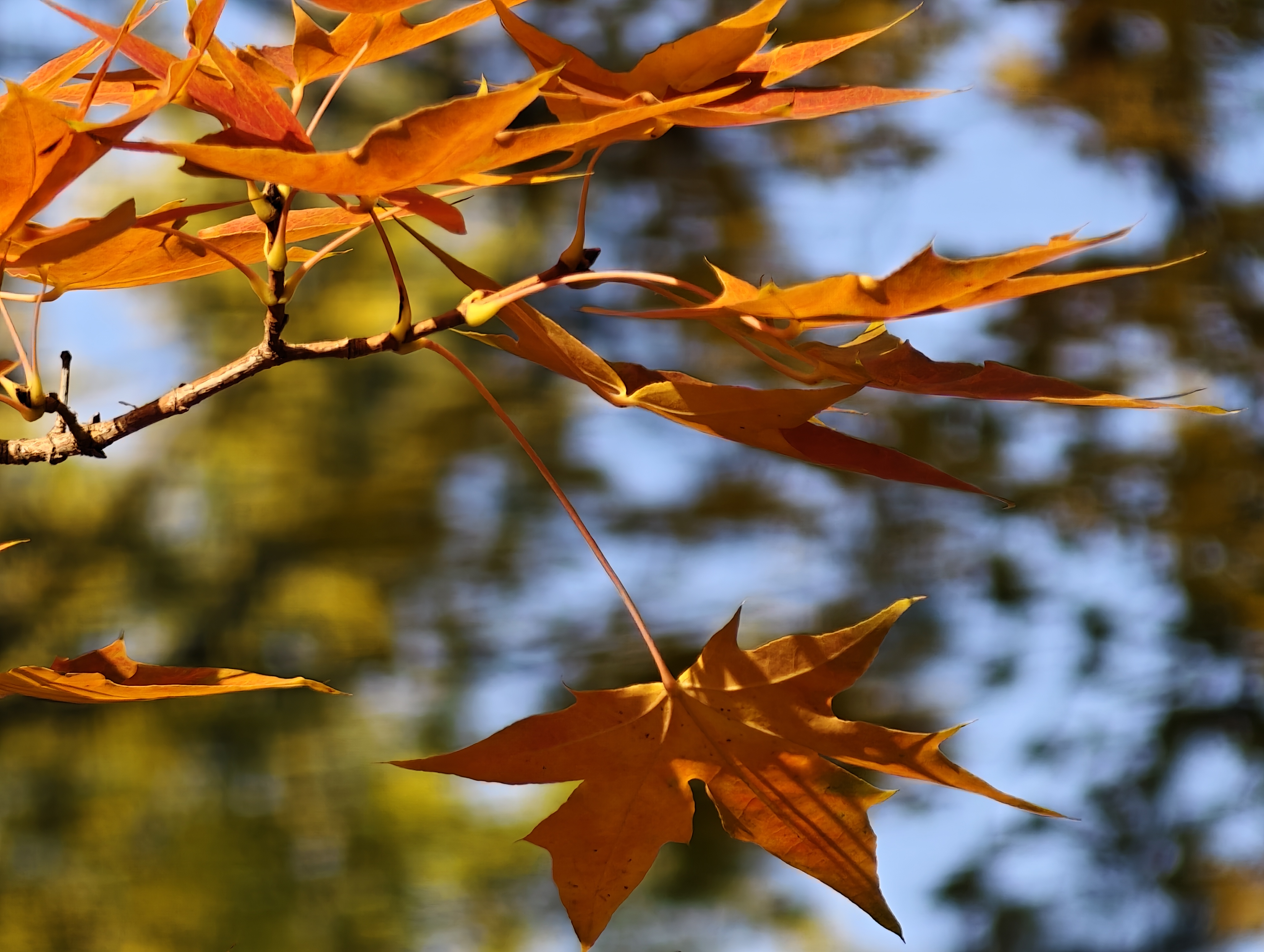 晨光中的紫竹院秋色绚烂,景美如画。