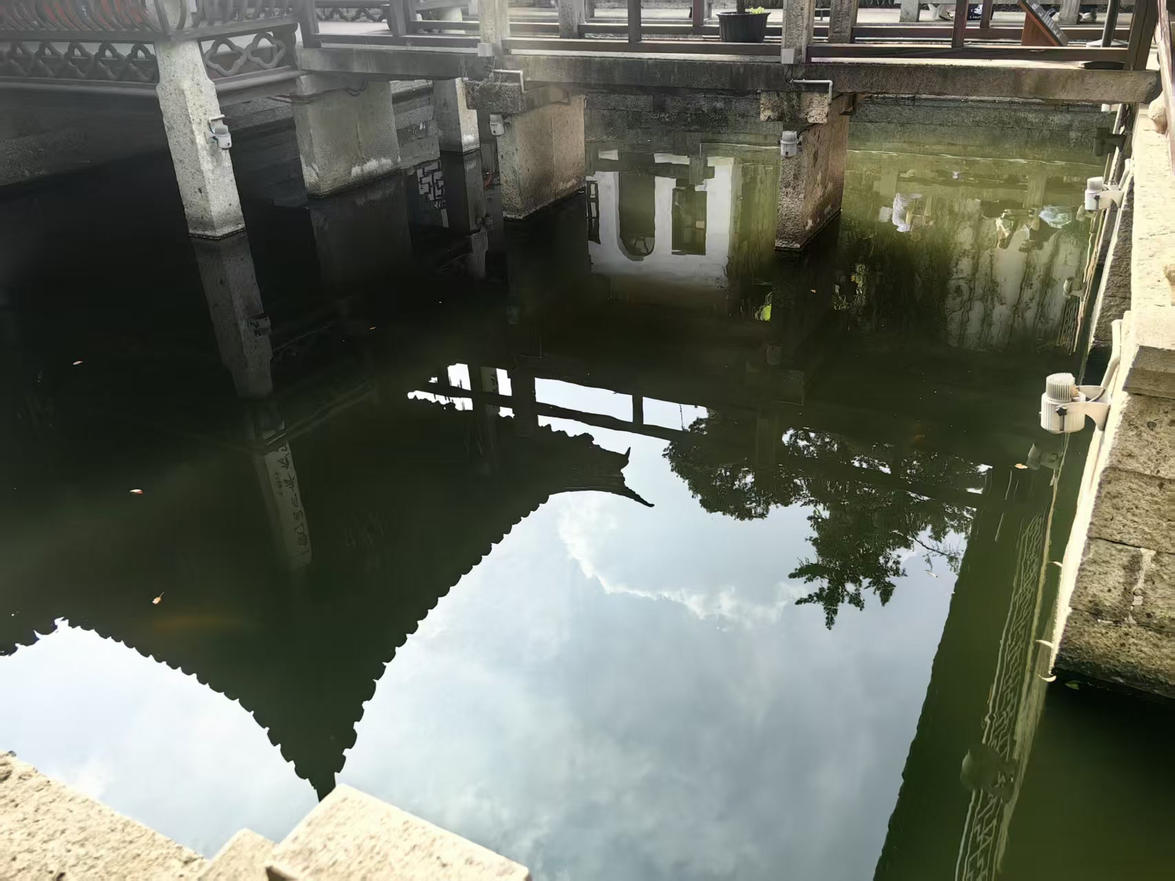 我举起相机,试图留住这份静谧。镜头里,墨池的幽绿与粉墙的斑驳、瓦当的沧桑构成一幅极简而深沉的构图。我小心地调整着光圈与快门,让秋日柔和的侧光勾勒出石栏的轮廓,让水面的倒影呈现出一种模糊而真实的历史感。当我按下快门时,听到的不仅是机身的轻响,更仿佛是自己那颗被文化乡愁充满的心,与这片千年宁静共振的微鸣。