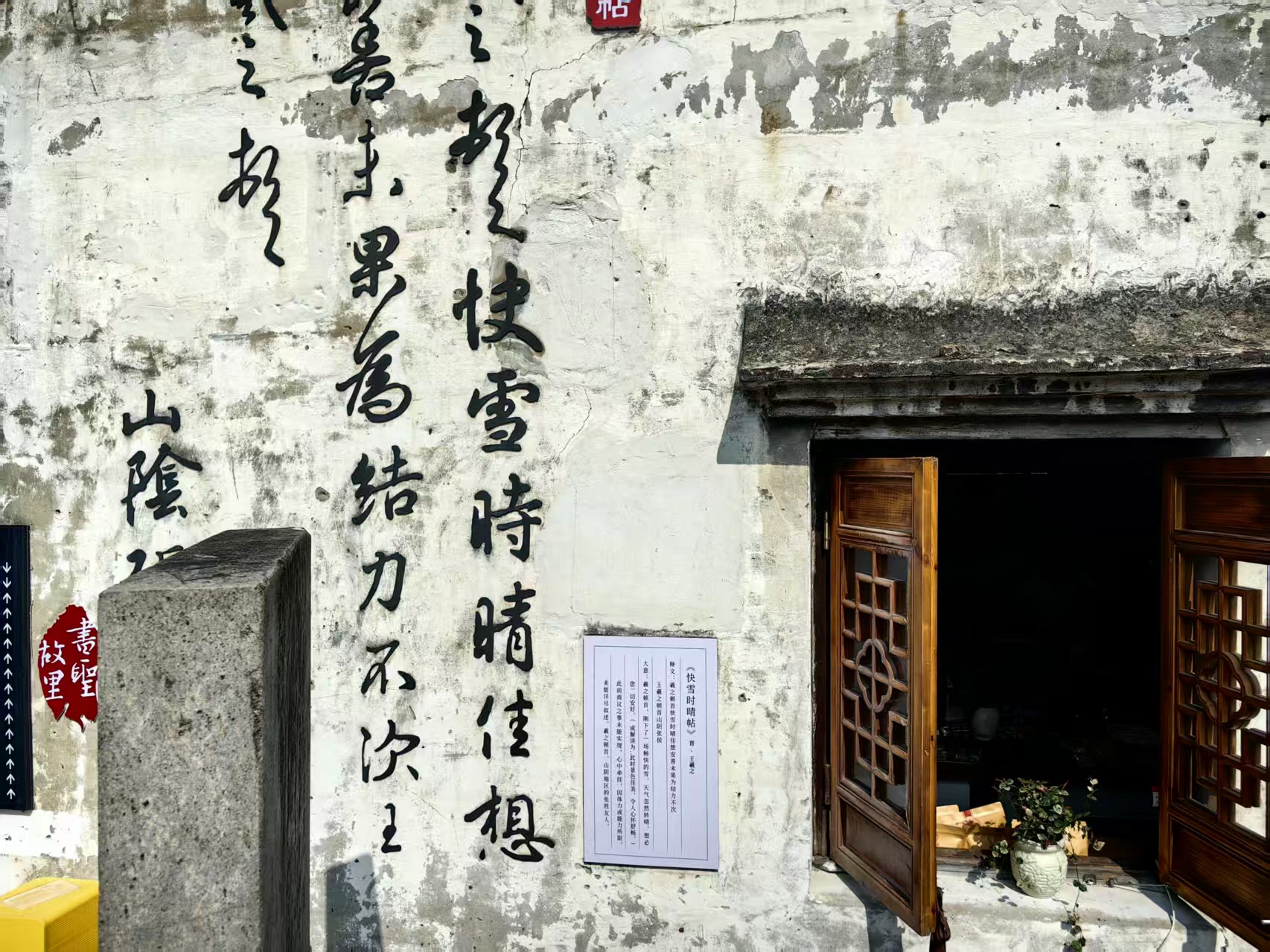 踏入书圣故里的地界,周遭便骤然安静下来。这静,并非万籁俱寂的死寂,而是一种被岁月沉淀、被文化浸润过的、温润的静谧。仿佛有一道无形的门帘,将身后解放北路的车马人声轻轻隔开,世界于此被调低了音量,只剩下光影在粉墙黛瓦间缓慢流淌的微声。