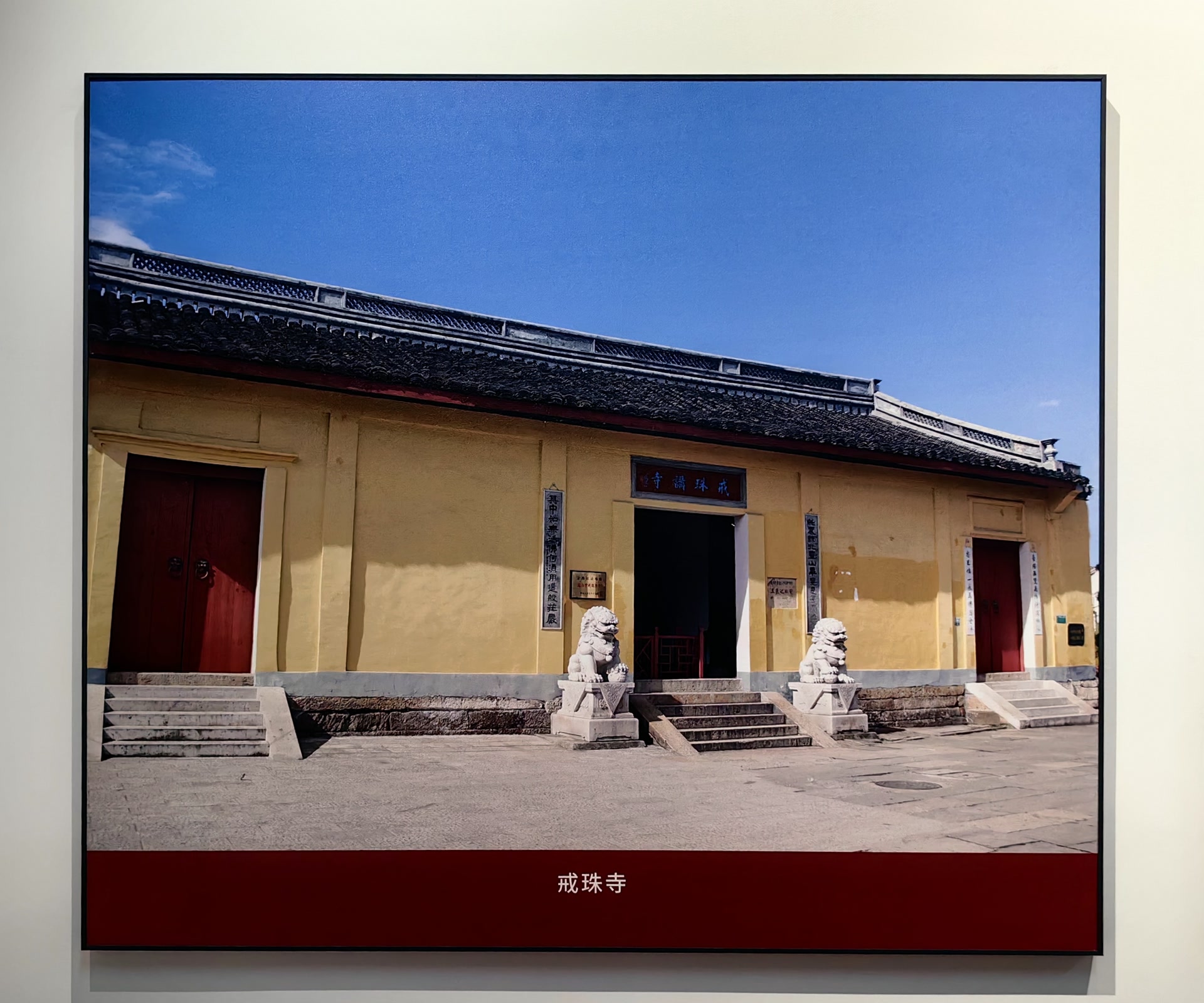 前行不远,便是那戒珠讲寺了。寺门素朴,并无恢宏之气,唯“戒珠”二字,匾额古旧,木质纹理清晰可见,那字迹笔力内敛,引人深思。据《嘉泰会稽志》等地方志记载,此处相传为王羲之(303—361,一说321—379)故宅,因其心爱之鹅曾为寺僧所饲,后僧友疑其窃珠,王羲之由此感悟世情之微妙,遂舍宅为寺,故名“戒珠”。这名字里,便藏着一份旷达与清戒的禅意。我没有急着入内,而是先被寺前那一方池水攫住了心神——这便是墨池了。