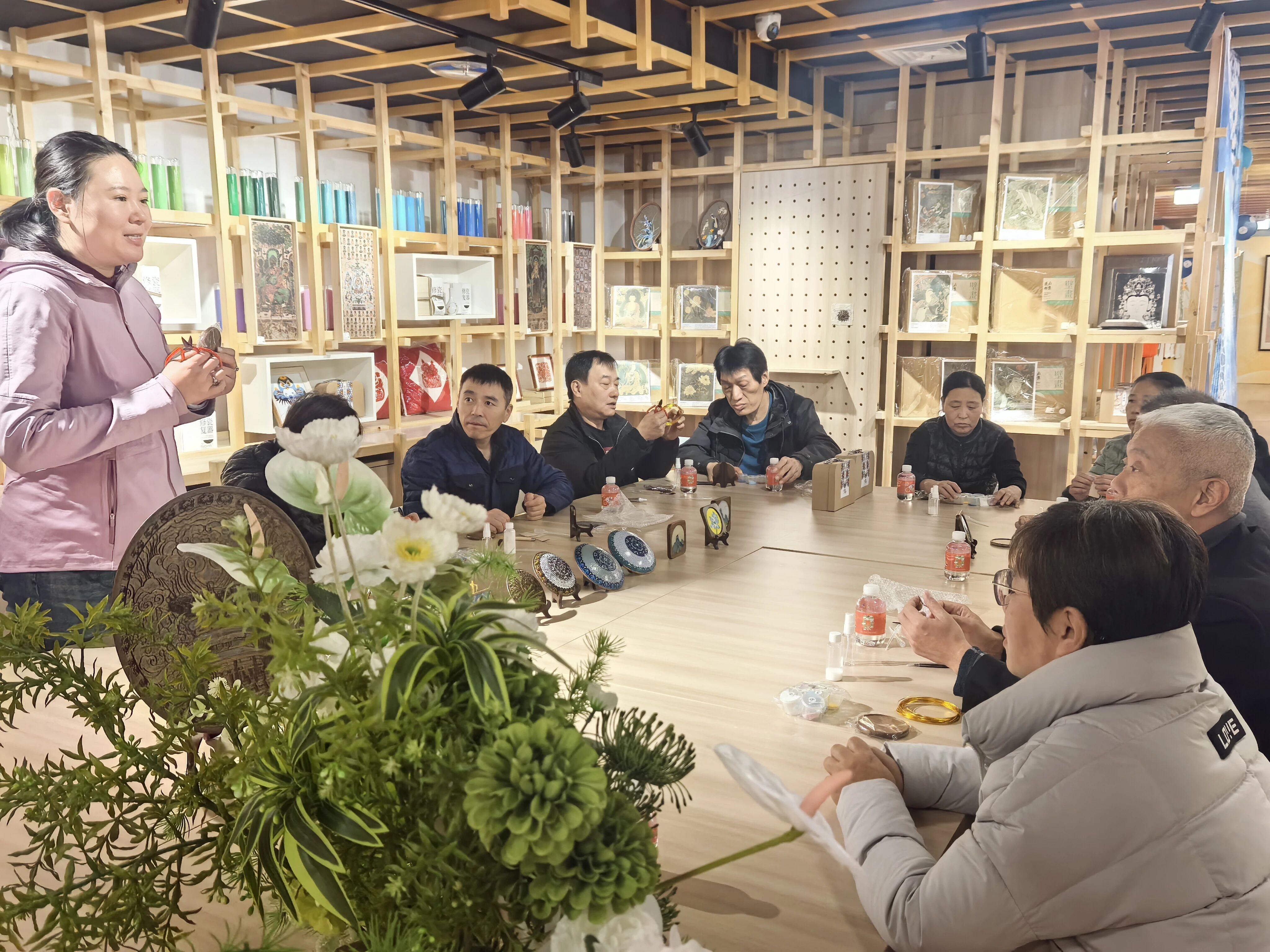 商圈还准备了丰富多样的文化活动。走进工美大厦四层的“予寻京喜”——艺术非遗“中国礼物”旗舰店互动体验区,专业老师指导围坐成一圈的老人体验景泰蓝制作工艺。工美大厦副总经理杨羽佳说,“店内备有多种非遗材料包,购买材料包即可免费体验制作,全程有专业老师答疑解惑,让老年朋友们在动手实践中感受传统文化魅力。”