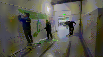 18点00分:经过切割、清理、搬运等高效作业,成功拆除脱落的装饰,墙面清理完毕。社区工作人员随即电话回访居民,告知处理结果。
