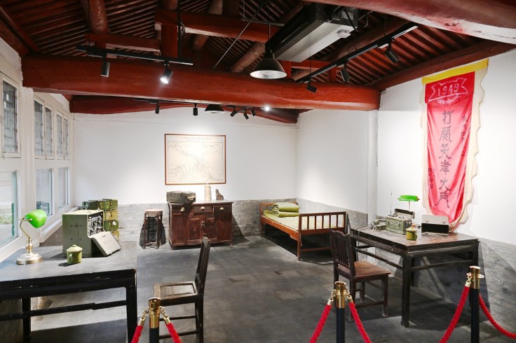 走进平津战役指挥部旧址,灰瓦红门的两跨院映入眼帘。平津战役指挥部旧址执行馆长周连志介绍:“这座院子很大,院墙边缘挨着通怀路,包括纪念馆的办公室都在原来大院的范围内。当时的房子也很气派,打地基用的青石依旧清晰可见,每块至少两吨重,而且院子的两个角落还建有瞭望塔。到了北平和平解放后,这里还曾作为乡、镇等当地机关驻地。”