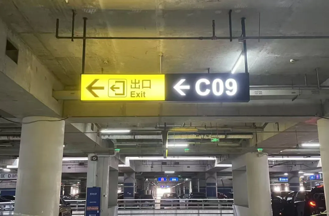 新一批灯箱指引标识在视觉呈现与功能设计上实现双重提升:面板采用高透光材质,确保在光线不足环境下依然清晰醒目,有效避免反光与模糊;文字使用黑体并合理控制字号,增强远距离可读性;更在关键转向位置增设有箭头指引符号,构建起“入口—路径—目标区”无缝衔接的指引链条,切实打通旅客寻位停车、寻位找车的“最后一米”。