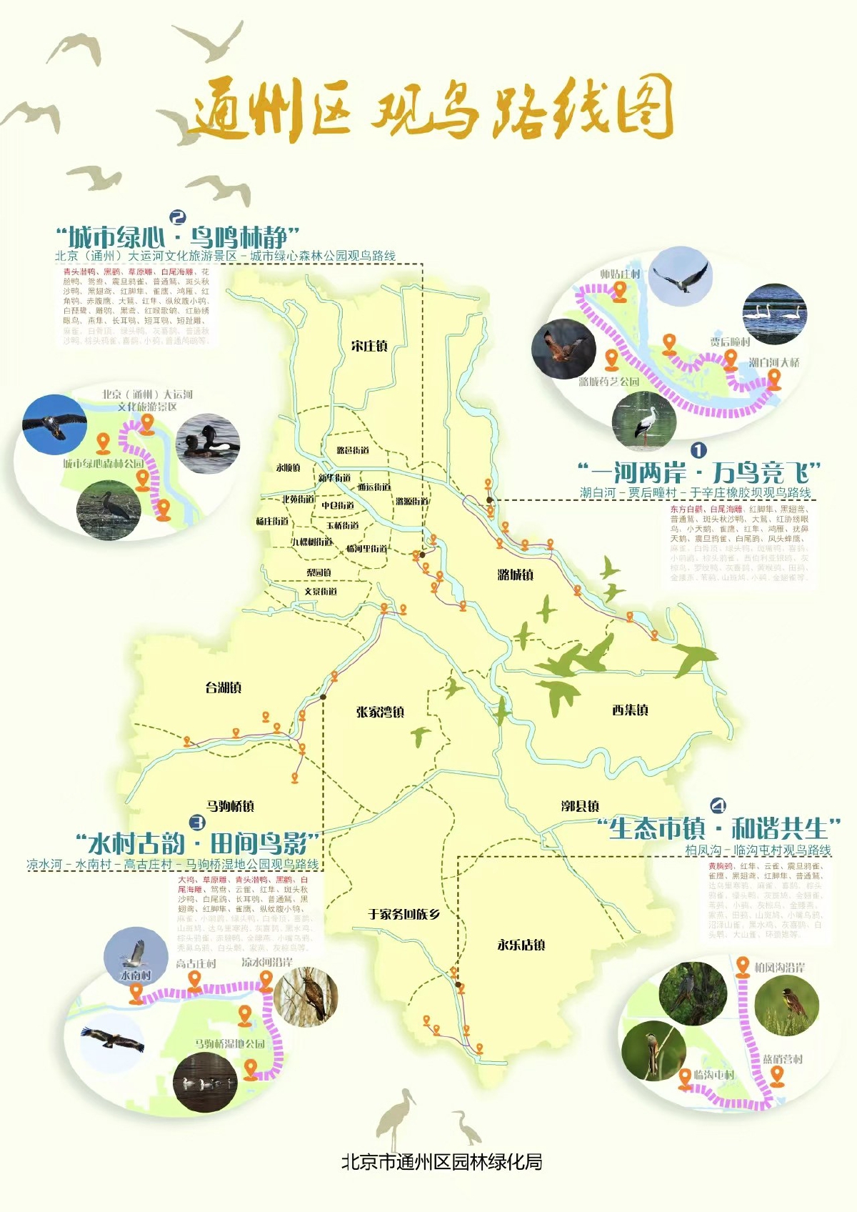 ▶ 通州区推出了四条观鸟路线!各具特色,覆盖不同生态场景