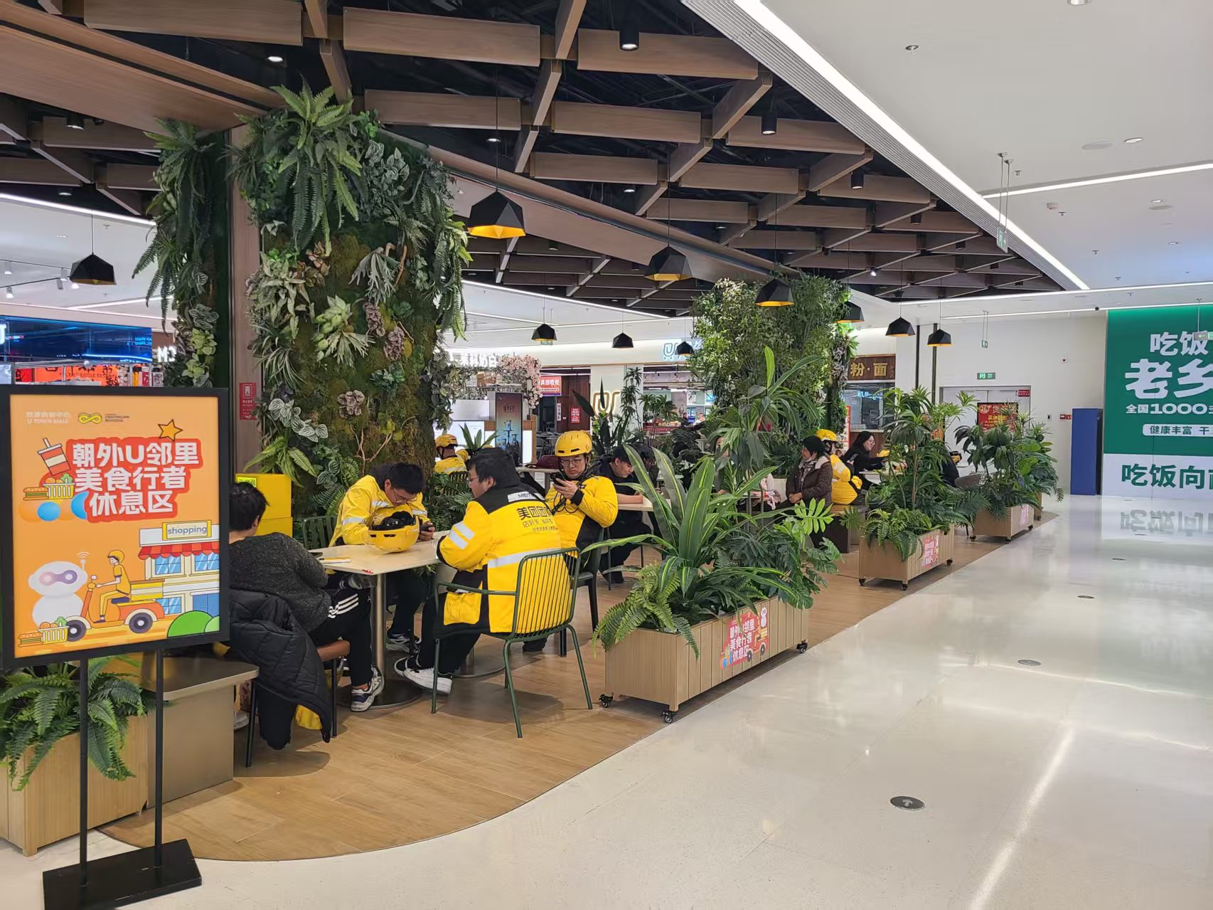 近日,朝阳区朝外街道悠唐购物中心地下一层的“朝外U邻里美食行者休息区”全新升级亮相,并联合周边多家商户推出新就业群体专属优惠,为骑手提供更加便捷贴心的服务。