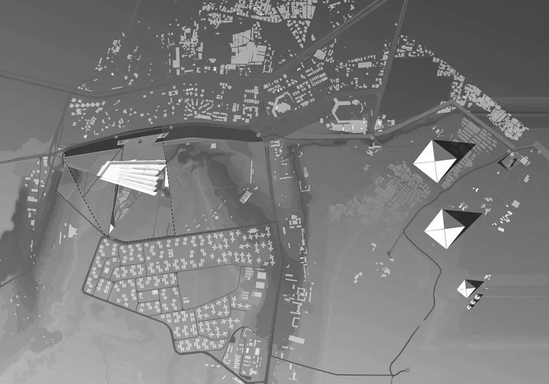 面对不远处举世闻名的金字塔,任何新建筑都可能相形见绌,而彭士佛的解决方案正在于“中庸之道”——不偏不倚,无过与不及。他巧妙地将博物馆设置在高原与平原之间,既不在高原上与金字塔争锋,也不从平原中完全隐没。